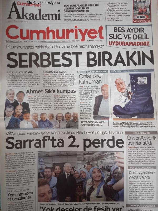 Cumhuriyet Gazetesi,29 Mart 2017,Ahmet Şık,Hıfzı Topuz,Kemal Kılıçdaroğlu,Dursun Özbek,Fenerbahçe,Kamuran Yüksek,Cemal Süreya,Rıza Sarraf,Mehmet Hakan Atilla,Recep Tayyip Erdoğan adlı eser Türkçe dilindedir.