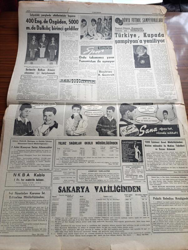 Cumhuriyet Gazetesi - 29 Mayıs 1962 - Paris'te Bir Kongre Yazan Nadir Nadi Başmakale - Adalet Partisi Senato Grubu Afla İlgili Hükümet Görüşünü Kabul Etti - Sermaye Yatırımı İle İlgili Türk Batı Alman Görüşmelerine Başlandı - İkinci İmar Ve İskân Kongresi Açıldı - Of'lu Mehmet Reis Uçakla İsrail'e Gitti - Plajlar Ve Moteller 3 Gün Sonra Açılacak - Silifke'de Genç Bir Yobaz Atanın Büstünü Parçaladı - İsmet İnönü'yü Öldüreceğim Diyen Sarhoş Önce Tevkif Edildi Sonra Serbest Bırakıldı - Bir Daha Bir Daha Yazan İlhan Selçuk Köşe Yazısı - Son Macera Yazan Maurice Dekobra Yazı Dizisi - Franco Din Adamlarını İspanyol Grevcilerini Tahrik Etmekle Suçladı - Kızıl Çin'de Açlık - Havada Laflar Yazan Burhan - Brigitte Bardot'un Halefi Kim Olacak - Resimli Roman Melun Kız Çizen Yves Sayol - Bay Oscar Karikatür - Mersin Petrolünün İlk Partisi İstanbul'a Geliyor - Bingöl'de Liseliler Paydos'u Temsil Etti - 400 Metre Engellide Fahir Özgüden 5000 Metrede Muharrem Dalkılıç Birinci Geldiler - Fenerbahçe, Yunus Nadi tarafından kaleme alınmıştır. Cumhuriyet Gazetesi - 29 Mayıs 1962 - Paris'te Bir Kongre Yazan Nadir Nadi Başmakale - Adalet Partisi Senato Grubu Afla İlgili Hükümet Görüşünü Kabul Etti - Sermaye Yatırımı İle İlgili Türk Batı Alman Görüşmelerine Başlandı - İkinci İmar Ve İskân Kongresi Açıldı - Of'lu Mehmet Reis Uçakla İsrail'e Gitti - Plajlar Ve Moteller 3 Gün Sonra Açılacak - Silifke'de Genç Bir Yobaz Atanın Büstünü Parçaladı - İsmet İnönü'yü Öldüreceğim Diyen Sarhoş Önce Tevkif Edildi Sonra Serbest Bırakıldı - Bir Daha Bir Daha Yazan İlhan Selçuk Köşe Yazısı - Son Macera Yazan Maurice Dekobra Yazı Dizisi - Franco Din Adamlarını İspanyol Grevcilerini Tahrik Etmekle Suçladı - Kızıl Çin'de Açlık - Havada Laflar Yazan Burhan - Brigitte Bardot'un Halefi Kim Olacak - Resimli Roman Melun Kız Çizen Yves Sayol - Bay Oscar Karikatür - Mersin Petrolünün İlk Partisi İstanbul'a Geliyor - Bingöl'de Liseliler Paydos'u Temsil Etti - 400 Metre Engellide Fahir Özgüden 5000 Metrede Muharrem Dalkılıç Birinci Geldiler - Fenerbahçe adlı eser Türkçe dilindedir.