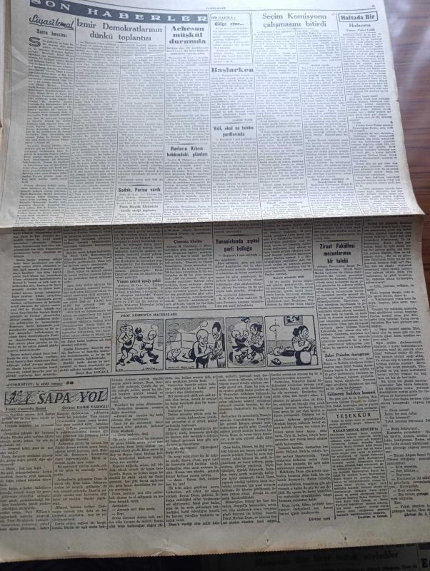 Cumhuriyet Gazetesi - 29 Ocak 1950 - başlarken yazan Nadir Nadi Başmakale - seçim komisyonu çalışmasını bitirdi - Manisa Kongresi CHP İl Kongresi dün açıldı - Kominform ilkbaharda Tito'ya hücum edecek - İzmir demokratlarının dünkü toplantısı - Demokrat Parti İl Başkanı Ekrem Hayri Üstündağ kongre'de iktidara hücumlarda bulundu - Avrupa'ya şubatta silah gönderilecek - Vali Fahrettin Kerim Gökay okul ve talebe yurtlarında fotoğraf - Endonezya'daki isyanın İstanbullu elebaşısı yüzbaşı Westerling fotoğraf - Haftanın Şakaları Yazan Burhan Felek - İlk meclisi mebusan reisi Ahmet Rıza Beyin hatıraları yazı dizisi - hemşerilerimle yazan Falih Rıfkı Atay - Nuh'un gemisi kanada'da - Ölüme Doğru Yazan Agatha Christie yazı dizisi - 1949-1950 Yunus Nadi mükafatı bir yurt yazısı Yeşilhisar - İstanbul Basketbol Şampiyonası - Zorlu misafir Bugün Melek sinemasında - Pisa'nın eğri kulesi yıkılma tehlikesinde fotoğraf - Yılmaz Reis ipek sinemasında - Patrik Athegonaras ve Muammer Karaca fotoğraf adlı eser, Kitap > Süreli Yayınlar > Gazeteler > Türkiye > Genel > Günlük kategorisinde İkinci El olarak satıştadır.