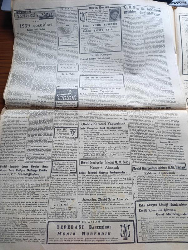 Cumhuriyet Gazetesi - 29 Temmuz 1947 - Endonezya'da Yazan Nadir Nadi Köşe Yazısı - CHP'de Beklenen Mühim Değişiklikler - CHP Genel Sekreterliğine Şükrü Kaya Veya Rauf Orbay Getirileceği Söyleniyor - Cumhurbaşkanı İsmet İnönü Dün İstanbul'a Geldi - Gümülcine Çetecilerin Daimi Tehdidi Altında - Celal Bayar Çeşmeye Gitti - İngiliz İmparatorluğu Sergisi Dün Açıldı - Askeri Şura Dün İstanbul'da Toplandı - Erzurum'da Değerli Bir Sanat Sergisi Yazan Ahmed Halil - İsmail Dümbüllü Tiyatrosu Bu Akşam Suadiye Çınardibinde - Yabancı Kadın Yazan Ahmed Hidayet Reel Yazı Dizisi - Çimento Davası Yazan Burhan Felek - Amerika'nın Türkiye'ye Yardımı Ve Ruslar - Büyük Konser Safiye Ayla Ve Münir Nurettin Selçuk Cağaloğlu Çiftesaraylar Bahçesinde - 1947 1948 Yunus Nadi Mükafatı En Güzel Hikaye 1939 Çocukları Yazan Raif Seyhan - Oxford Keskin Ağızlı Traş Bıçağı - Pertev Pudrası - Müzeyyen Senar Işıl Konseri Caddebostan Marmara Kulübünde - Jeep İşbaşında - Bugünkü Radyo Programı, Yunus Nadi tarafından kaleme alınmıştır. Cumhuriyet Gazetesi - 29 Temmuz 1947 - Endonezya'da Yazan Nadir Nadi Köşe Yazısı - CHP'de Beklenen Mühim Değişiklikler - CHP Genel Sekreterliğine Şükrü Kaya Veya Rauf Orbay Getirileceği Söyleniyor - Cumhurbaşkanı İsmet İnönü Dün İstanbul'a Geldi - Gümülcine Çetecilerin Daimi Tehdidi Altında - Celal Bayar Çeşmeye Gitti - İngiliz İmparatorluğu Sergisi Dün Açıldı - Askeri Şura Dün İstanbul'da Toplandı - Erzurum'da Değerli Bir Sanat Sergisi Yazan Ahmed Halil - İsmail Dümbüllü Tiyatrosu Bu Akşam Suadiye Çınardibinde - Yabancı Kadın Yazan Ahmed Hidayet Reel Yazı Dizisi - Çimento Davası Yazan Burhan Felek - Amerika'nın Türkiye'ye Yardımı Ve Ruslar - Büyük Konser Safiye Ayla Ve Münir Nurettin Selçuk Cağaloğlu Çiftesaraylar Bahçesinde - 1947 1948 Yunus Nadi Mükafatı En Güzel Hikaye 1939 Çocukları Yazan Raif Seyhan - Oxford Keskin Ağızlı Traş Bıçağı - Pertev Pudrası - Müzeyyen Senar Işıl Konseri Caddebostan Marmara Kulübünde - Jeep İşbaşında - Bugünkü Radyo Programı adlı eser Türkçe dilindedir.