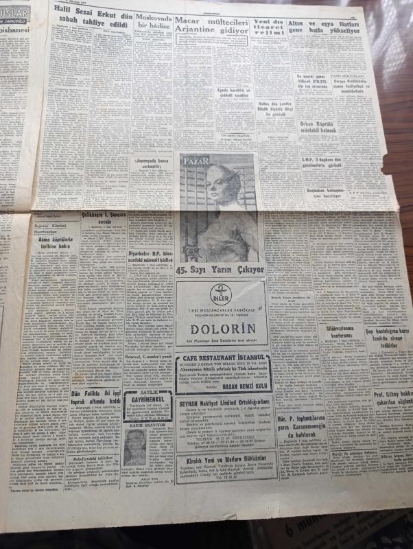 Cumhuriyet Gazetesi - 3 Ağustos 1957 - Saygı Nasıl Korunur Yazan Nadir Nadi Başmakale - Japon Gazeteci Minoru Hirano Japonya'da Basın Serbesttir Dedi - Halil Sezai Erkut Dün Sabah Tahliye Edildi - Amerikan Dışişleri Bakanı John Foster Dulles Dün Londra'da Büyük Elçimiz Muharrem Nuri Birgi İle Görüştü - Silahsızlanma Konferansı - Hürriyet Partisi Toplantılarına Yarın Fevzi Lütfi Karaosmanoğlu Da Katılacak - Maruf İngiliz Sanatkarı Vivien Leigh- Ege'de Kuraklık Ve Şiddetli Sıcaklar - Yanlış Zifaf Yazan Kemal Bilbaşar Yazı Dizisi - Boğaziçi Köprüsü Hazırlanırken Yazan Yüksek Mühendis Necdet Dirilgen Yazı - Marilyn Monroe Çocuğunu Aldırttı - Hrutçef'in İktidardan Düşmesi Yaklaşıyormuş - Küba'da İhtilal - Köpek Benji İdam edildi - Büyük Casuslar Derleyen A. Cemalettin Saraçoğlu - Ses Sanatkarı Muzaffer Akgün Büyükdere Beyaz Parkta - Futbolcu Hilmi Kiremitçi Transfer Konusunda Dördüncü Defa Karar Değiştirdi - Beykoz Mevsimi Merasimle Açtı - 5. Yıl Ahmed Reis Yelken Yarışı Bugün Yapılıyor adlı eser, Kitap > Süreli Yayınlar > Gazeteler > Türkiye > Genel > Günlük kategorisinde İkinci El olarak satıştadır.