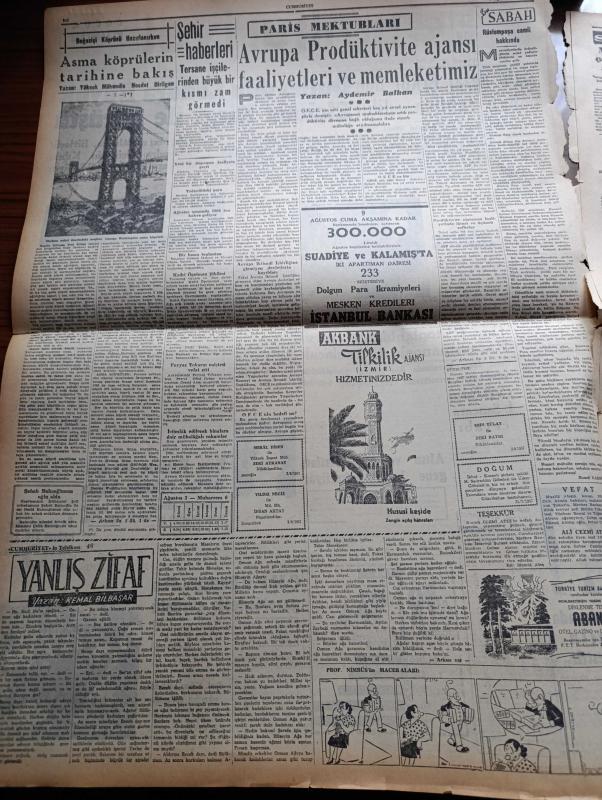 Cumhuriyet Gazetesi - 3 Ağustos 1957 - Saygı Nasıl Korunur Yazan Nadir Nadi Köşe Yazısı - Japon Gazeteci Minoru Hirano Japonya'da Basın Serbesttir Dedi - Halil Sezai Erkut Dün Sabah Tahliye Edildi - Amerikan Dışişleri Bakanı John Foster Dulles Dün Londra'da Büyük Elçimiz Birgi İle Görüştü - Silahsızlanma Konferansı - Hürriyet Partisi Toplantılarına Yarın Fevzi Lütfi Karaosmanoğlu Da Katılacak - Ege'de Kuraklık Ve Şiddetli Sıcaklar - Yanlış Zifaf Yazan Kemal Bilbaşar Yazı Dizisi - Boğaziçi Köprüsü Hazırlanırken Yazan Yüksek Mühendis Necdet Dirilgen Yazı - Marilyn Monroe Çocuğunu Aldırttı - Hrutçef'in İktidardan Düşmesi Yaklaşıyormuş - Küba'da İhtilal - Köpek Benji İdam edildi - Resimli Romanımız Çifte Cinayet - Büyük Casuslar Derleyen A. Cemalettin Saraçoğlu - Ses Sanatkarı Muzaffer Akgün Büyükdere Beyaz Parkta - Futbolcu Hilmi Transfer Konusunda Dördüncü Defa Karar Değiştirdi - Beykoz Mevsimi Merasimle Açtı - 5. Yıl Ahmed Reis Yelken Yarışı Bugün Yapılıyor adlı eser, Kitap > Süreli Yayınlar > Gazeteler > Türkiye > Genel > Günlük kategorisinde İkinci El olarak satıştadır.