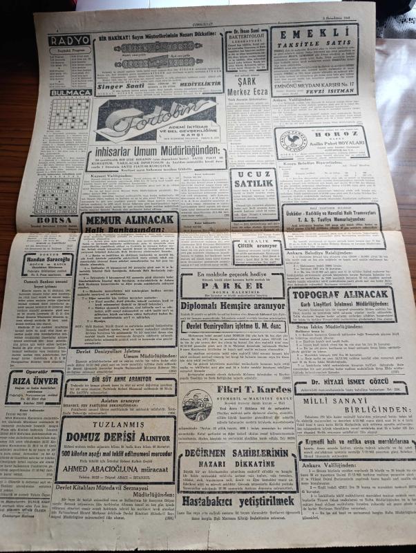 Cumhuriyet Gazetesi - 3 Birincikanun ( Aralık) 1942 - Bir Facia Etrafında 2 - Suikast Davası Dünkü Celsede Von Papen'in Hususi Katibesi Roz Dinlendi - Suikast Suçlularından Abdurrahman Kornilof Ve Pavlof Mahkeme Huzurunda Fotoğraf - Millet Meclisi Örfi İdare Kanununu Altı Ay Daha Temdid Etti - Mussolini Churchill'e Cevap Veriyor - Nafia Vekili Ali Fuad Cebesoy - Marmara'da Yapılacaktır İskeleler - Elageilada Kati Muharebe Başlıyor - Stalingrad Bölgesinde Çembere Alınanlar Almanlar - Şimali Afrika'da Darlan Bir İmparatorluk Konseyi Kurdu - Amerikan Ordusunun Şimali Afrika'ya Çıkışına Dair Radyo İle Nakledilen Resimler - Üsküdar Doğancılarda Şeyhülislam Ömer Efendi'nin Arsasında Verem Dispanserinin Temeli Atıldı Fotoğraf - Kızılay Seyyar Mutfaklar la Uzak Semtteki Halka Sıcak Yemek Verecek - Tanzimatın İlk Romanı Yazan İsmail Hami Danişmend Yazı Dizisi - Spor Hocası Faik Üstünidman Vefat Etti - Ses Sinemasında Yunanistan'ın En Güzel Sesi Tangolar Kraliçesi Sofia Vembo - Kar İzleri Örttü adlı eser, Kitap > Süreli Yayınlar > Gazeteler > Türkiye > Genel > Günlük kategorisinde İkinci El olarak satıştadır.