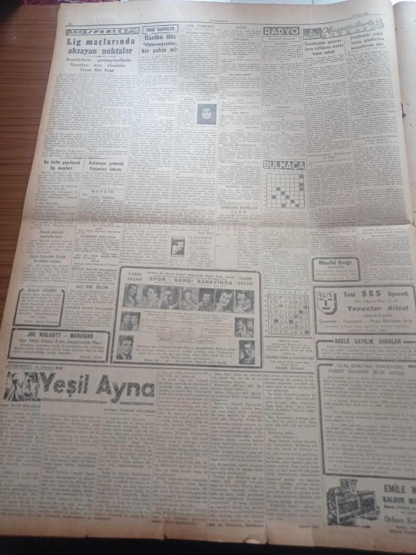 Cumhuriyet Gazetesi - 3 Ekim 1952 - Amiral McCormik Dün Sabah Ankara'ya Geldi - İran İngiltere İle Münasebeti Kesiyor - Japonya'da Kızılların Hezimeti - Amerika'da Seçim Kampanyası - Celal Bayar Murguldan Kars'a Hareket Etti - Göçmen Evlerinin Tevziine Başlandı - İsmet İnönünün Ege Seyahati - Stalin'in Hayali - Bizansın İçyüzü Yazı Dizisi - Rusya Danimarkayı Tehdide Başladı - Yunus Nadi Mükâfatı Karikatür Müsabakası - Burhan Felek - Vog Naylon - Medrano Sirkinin Çadırı Satılıyor - Geçmişte Büyük Cinayetler Yazı Dizisi - Hamiyet Yüceses - Hasan Oktay Gecesi - Lig Maçlarında Aksayan Noktalar - Mürüvvet Sim - Perihan Altındağ Sözeri - Yeni Radar Cihazı - Günün Resimleri - Sümerbank - Antifar Gözlükleri - Savaş Çil İlacı - Ericsson Elektrik Sayaçları - Brasso Maden - G.E.C Pilli Radyo Ve Bataryaları - Ferdi Tayfur Beyaz Parkta - İsolan Dürbünleri - Odeon Mağazaları adlı eser, Kitap > Süreli Yayınlar > Gazeteler > Türkiye > Genel > Günlük kategorisinde İkinci El olarak satıştadır.