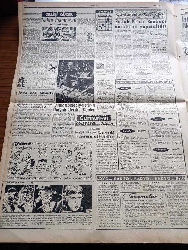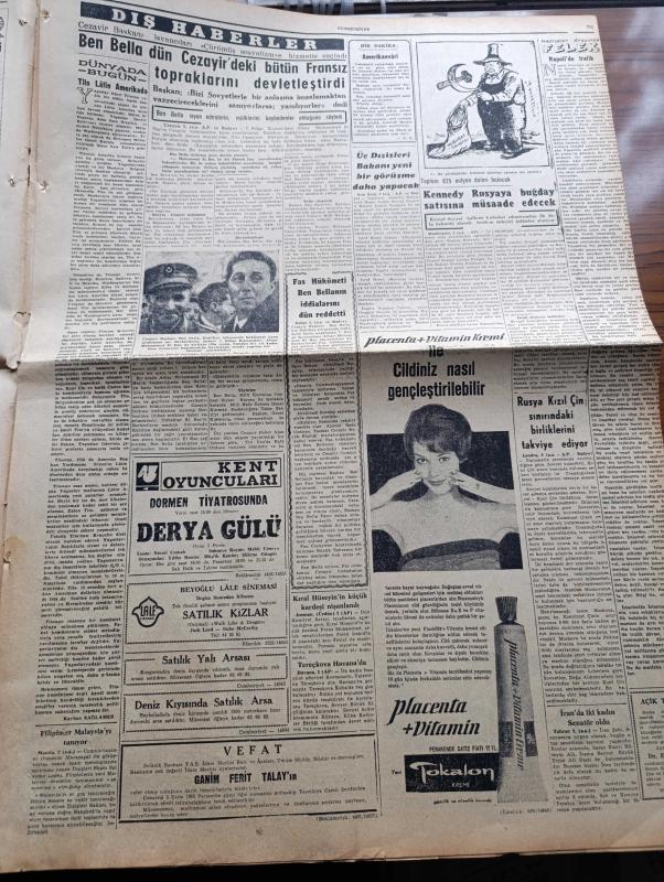 Cumhuriyet Gazetesi - 3 Ekim 1963 - Yeni Türkiye Partililer Hıfzı Oğuz Bekata'yı İtham Ettiler - Sağlık Bakanı Yusuf Azizoğlu Hıfzı Oğuz Bekata'ya Cevap Verdi - Bekata Olayı Yazan Ecvet Güresin - İsmet İnönü Bakanlıklara Genelge Gönderdi - Atatürk'ün En Yakın Silah Arkadaşlarından General Refet Bele Vefat Etti - Hü Dost Yazı Ve Fotoğraflar Fikret Otyam Yazı Dizisi - İlhan Selçuk Köşe Yazısı - Şanlı Kadırgalar Yazan Feridun Fazıl Tülbentçi Yazı Dizisi - Parisli Gözde Çeviren Hatice Vildan Yazı Dizisi - Kennedy Rusya'ya Buğday Satışına Müsaade Edecek - Toto Karaca İle Celal Sururi Zır Delilerde - Esin Eden Dormen Tiyatrosunda - Tülin Oral Abdurrahman Palay Saim Alpago Lale Oraloğlu Ve Ihsan Yüce Dr. Freud Ve Hastası Piyesinde Fotoğraf - Kupe Ve Kabriyole Otomobiller Büyük Rağbet Görüyor - Beşiktaş'ı 3 0 Mağlup Eden Galatasaray Atatürk Kupasında Finale Kaldı - Metin Oktay Dünyaya Gelsem Tekrar Futbolcu Olur Tekrar Galatasaray'da Oynarım - 4. Akdeniz Oyunları Ve Düşünceler - Burhan Felek adlı eser, Kitap > Süreli Yayınlar > Gazeteler > Türkiye > Genel > Günlük kategorisinde İkinci El olarak satıştadır.