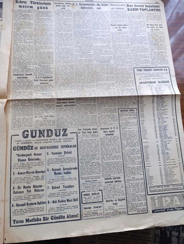 Cumhuriyet Gazetesi - 3 Eylül 1957 - Fevzi Lütfi Karaosmanoğlu Bu İktidar Değişmelidir Dedi - Meclisin Dünkü İçtimai 1 Saat 20 Dakika Sürdü - Yunanistan'ın Ankara Büyükelçisi George Pesmazoğlu Geldi Fotoğraf - Venedik Film Festivali - Dün Afgan Kralı Şerefine Askerî Bir Tatbikat Yapıldı - İstimlak İşlerinde Yolsuzluk İddiaları - Cumhuriyet Venedik Film Festivalinde Röportajı Yapan Selmi Andak - Turist Seyahat Anonim Şirketi Kuruldu - Osmanlı Bankası - Rock And Roll'den Sonra Mahkemeye - Mühürleri Alınan Muhtarlar - Emekli Sandığının Niyetleri Yazan Burhan Felek Köşe Yazısı - Ankara İstanbul Radyosu Programı - Kıbrıs Türklerinin Matem Günü İsmail Beyoğlu'nun Cenazesi - Vefa Ve Beşiktaş Dün Akşam Kampa Girdiler - Dün İstanbul Tenis Şampiyonası Başladı - Karagümrük Beylerbeyi Maçı - Türkiye Romanya Basketbol Maçı Fotoğraf - Piyale Makarna - Selmer Çocuk Bisikletleri adlı eser, Kitap > Süreli Yayınlar > Gazeteler > Türkiye > Genel > Günlük kategorisinde İkinci El olarak satıştadır.