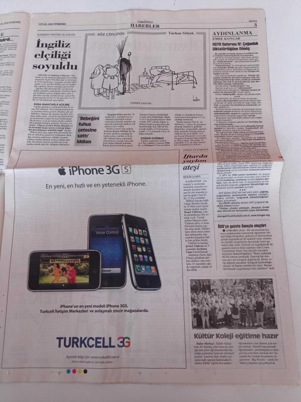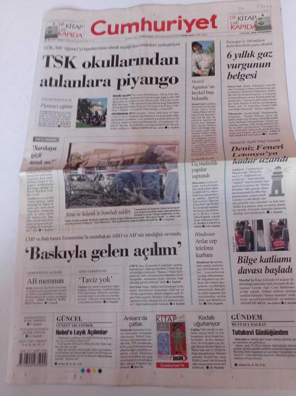 Cumhuriyet Gazetesi - 3 Eylül 2009 - TSK Okullarından Atılanlara Piyango - 6 Yıllık Gaz Vurgunun Belgesi - Bilge Köyü Katliamı Davası Başladı - Deniz Feneri Letonya'ya Kadar Uzandı - Cumhuriyet Savcısı Ferhat Sarıkaya Gizli Tanık Mı - Arılar Cep Telefonu Kurbanı - Ermenistan Açılımı adlı eser Türkçe dilindedir.