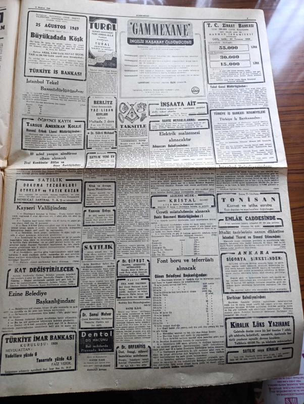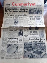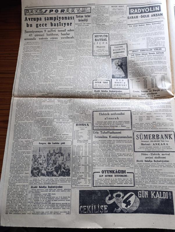 Cumhuriyet Gazetesi - 3 Haziran 1949 - Avrupa'yı ölümle tehdit eden kanser yazan Abidin Daver Başmakale - seçim meselesi üzerine meclise çıkan münakaşa - Demokrat Parti'nin ara seçimlere girmeyişinin bir sebebi daha açıklandı - Avrupa Şampiyonası Bu Gece başlıyor - İstanbul'a gelen ecnebi güreşçilerden bir kısmı tarabya'da tokatlıyan otelinin kapısında fotoğraf - Milli takımımız Yazan İsmail Habib - bitmemiş spor sarayı bu akşam açılıyor fotoğraf - talebe Federasyonu milli Türk Talebe birliği'nin yakında kendini fesh edeceğini bildiriyor - kuryemiz Fuat Güzaltan Rusya'da trende şakağından yaralı bulundu - aşırı sağ ve solcu memurlar - On Yaşında Bir Kumarbaz yazan doktor Kemal Saraçoğlu - Beyoğlu Zükûr Hastanesi bugün açılıyor - kiracılar miting yapacaklar - Türkiye İş Bankası'nın Mardin şubesi açıldı - Beylik kar edemez yazan Burhan Felek - Rangers Takımı Dün İzmir'den Geldi Fotoğraf - Galatasaray dün ankaragücü'ne 4-3 yenildi - Mualla Gökçay ve Sıtkı Akçatepe Yenikapı M. Çakır'da adlı eser, Kitap > Süreli Yayınlar > Gazeteler > Türkiye > Genel > Günlük kategorisinde İkinci El olarak satıştadır.