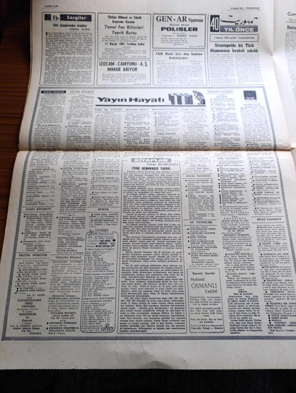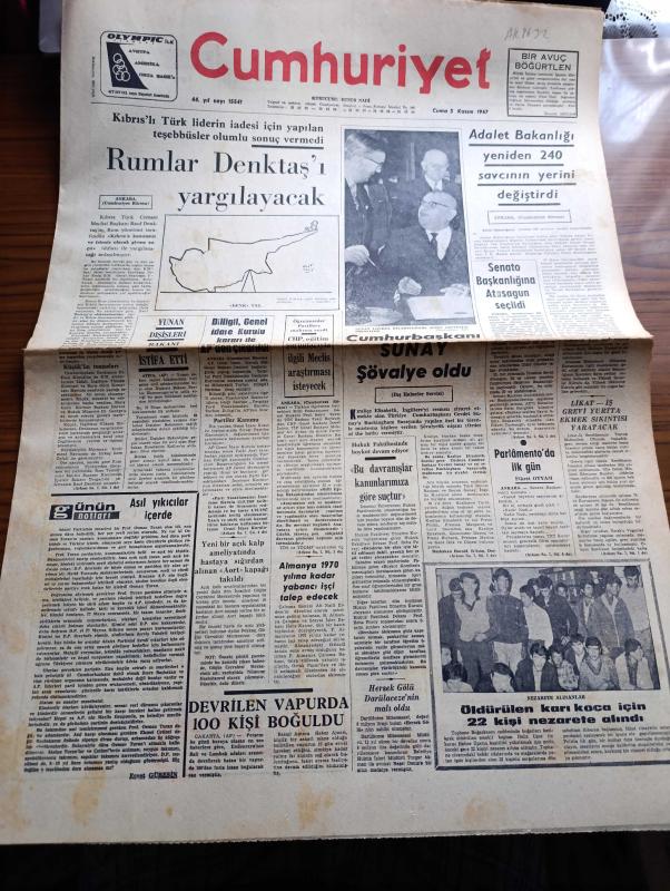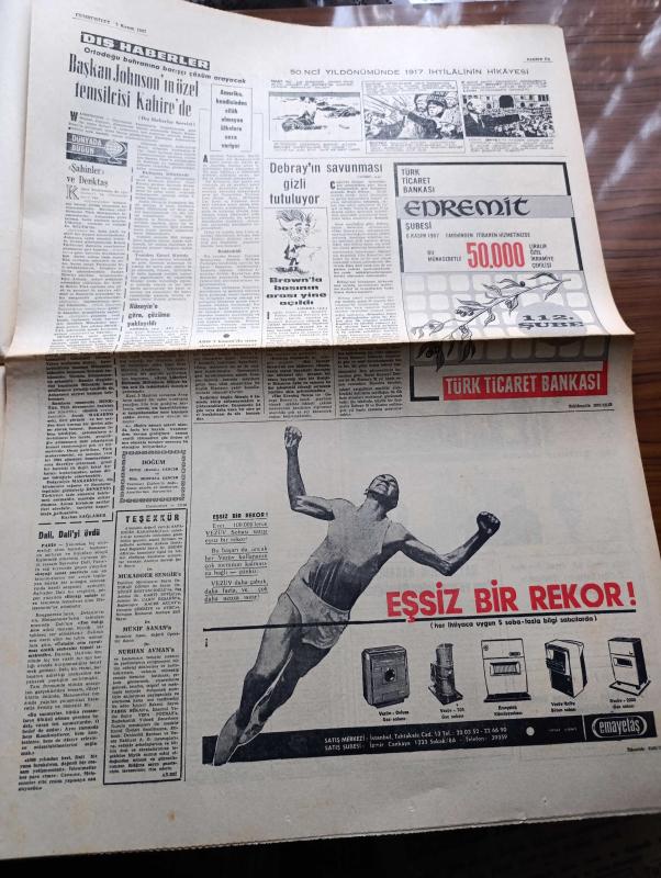 Cumhuriyet Gazetesi - 3 Kasım 1967 - Asıl Yıkıcılar İçerde Yazan Ecvet Güresin Başmakale - Rumlar Rauf Denktaş'ı Yargılayacak - Cumhurbaşkanı Cevdet Sunay Şövalye Oldu Fotoğraf - Adalet Bakanlığı Yeniden 240 Savcının Yerini Değiştirdi - Hersek Gölü Darülacezenin Malı Oldu - TÖS Başkanı Fakir Baykurt - Yeni Bir Açık Kalp Ameliyatında Hastaya Sığırdan Alınan Aort Kapağı Takıldı - Parlamentoda İlk Gün Yazan Fikret Otyam - Besni Ve Sonora 64 - Dayan Bahriyeli Oyunu Tepebaşı Tiyatrosunda - 50. Yıldönümünde 1917 İhtilalinin Hikayesi Çizgi Roman - Ernest Hemingway'in Gözüyle Atatürk Türkiyesi Derleyen Mehmet Barlas Yazı Dizisi - Yayın Hayatı - Sol Yayınları - Yarım Asrın Kuvvetleri Röportajlar Abdulkadir Yücelman - Milyonluk Hata Ve Yolsuzluklara Parmak Basan Spor Toto Teftiş Raporu Yeni Bir Safhada - Basketbolcu Erdal Poyrazoğlu İle Hüseyin Kozlucaya Madalya Veriliyor - Göztepe Atletico Madrid Maçı İçin Pazartesi İspanya'ya Gidiyor - Spartak Basketbol Takımı Altınordu'dan Çekiniyor, Yunus Nadi tarafından kaleme alınmıştır. Cumhuriyet Gazetesi - 3 Kasım 1967 - Asıl Yıkıcılar İçerde Yazan Ecvet Güresin Başmakale - Rumlar Rauf Denktaş'ı Yargılayacak - Cumhurbaşkanı Cevdet Sunay Şövalye Oldu Fotoğraf - Adalet Bakanlığı Yeniden 240 Savcının Yerini Değiştirdi - Hersek Gölü Darülacezenin Malı Oldu - TÖS Başkanı Fakir Baykurt - Yeni Bir Açık Kalp Ameliyatında Hastaya Sığırdan Alınan Aort Kapağı Takıldı - Parlamentoda İlk Gün Yazan Fikret Otyam - Besni Ve Sonora 64 - Dayan Bahriyeli Oyunu Tepebaşı Tiyatrosunda - 50. Yıldönümünde 1917 İhtilalinin Hikayesi Çizgi Roman - Ernest Hemingway'in Gözüyle Atatürk Türkiyesi Derleyen Mehmet Barlas Yazı Dizisi - Yayın Hayatı - Sol Yayınları - Yarım Asrın Kuvvetleri Röportajlar Abdulkadir Yücelman - Milyonluk Hata Ve Yolsuzluklara Parmak Basan Spor Toto Teftiş Raporu Yeni Bir Safhada - Basketbolcu Erdal Poyrazoğlu İle Hüseyin Kozlucaya Madalya Veriliyor - Göztepe Atletico Madrid Maçı İçin Pazartesi İspanya'ya Gidiyor - Spartak Basketbol Takımı Altınordu'dan Çekiniyor adlı eser Türkçe dilindedir.