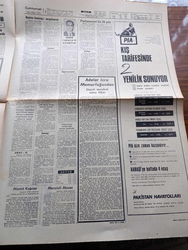 Cumhuriyet Gazetesi - 3 Kasım 1967 - Asıl Yıkıcılar İçerde Yazan Ecvet Güresin Başmakale - Rumlar Rauf Denktaş'ı Yargılayacak - Cumhurbaşkanı Cevdet Sunay Şövalye Oldu Fotoğraf - Adalet Bakanlığı Yeniden 240 Savcının Yerini Değiştirdi - Hersek Gölü Darülacezenin Malı Oldu - TÖS Başkanı Fakir Baykurt - Yeni Bir Açık Kalp Ameliyatında Hastaya Sığırdan Alınan Aort Kapağı Takıldı - Parlamentoda İlk Gün Yazan Fikret Otyam - Besni Ve Sonora 64 - Dayan Bahriyeli Oyunu Tepebaşı Tiyatrosunda - 50. Yıldönümünde 1917 İhtilalinin Hikayesi Çizgi Roman - Ernest Hemingway'in Gözüyle Atatürk Türkiyesi Derleyen Mehmet Barlas Yazı Dizisi - Yayın Hayatı - Sol Yayınları - Yarım Asrın Kuvvetleri Röportajlar Abdulkadir Yücelman - Milyonluk Hata Ve Yolsuzluklara Parmak Basan Spor Toto Teftiş Raporu Yeni Bir Safhada - Basketbolcu Erdal Poyrazoğlu İle Hüseyin Kozlucaya Madalya Veriliyor - Göztepe Atletico Madrid Maçı İçin Pazartesi İspanya'ya Gidiyor - Spartak Basketbol Takımı Altınordu'dan Çekiniyor adlı eser, Kitap > Süreli Yayınlar > Gazeteler > Türkiye > Genel > Günlük kategorisinde İkinci El olarak satıştadır.
