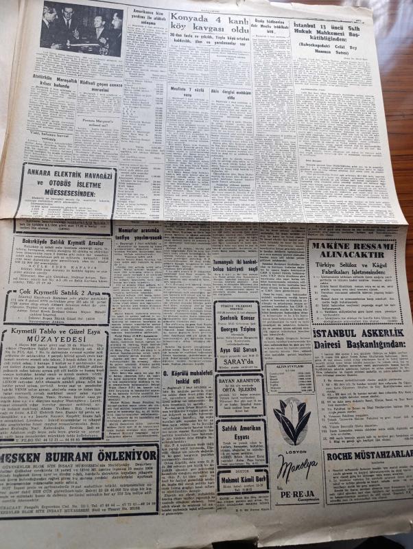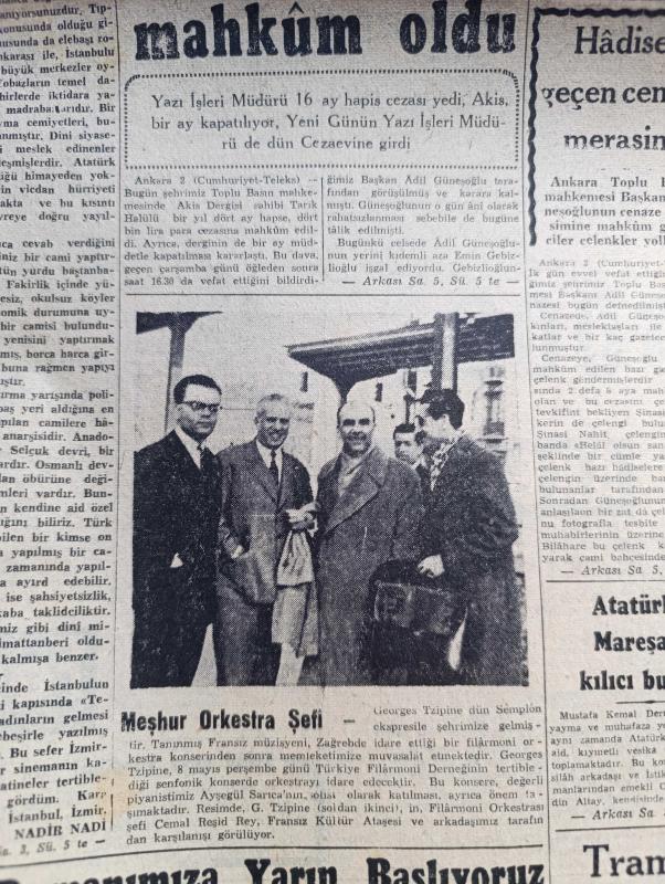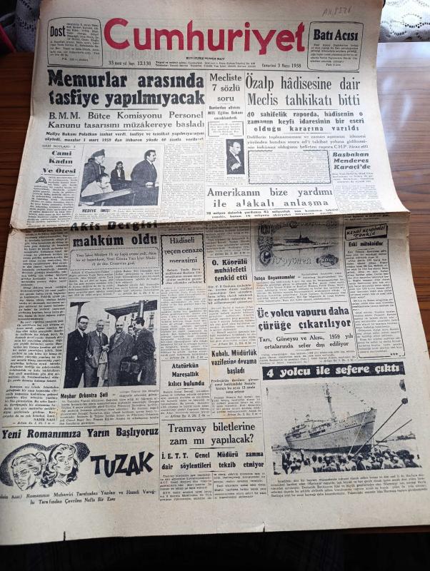 Cumhuriyet Gazetesi - 3 Mayıs 1958 - Gezi Notları 3 Cami Kadın Ve Ötesi Yazanlar Nadir Nadi Köşe Yazısı - Memurlar Arasında Tasfiye Yapılmayacak - Akis Dergisi Mahkum Oldu - Meşhur Orkestra Şefi Georges Tzipine İstanbul'a Geldi Fotoğraf - Van Özalp'ta 33 Vatandaşın Kurşuna Dizilmesi Hadisesine Dair Meclis Tahkikatı Bitti - Amerika'nın Bize Yardımı İle Alakalı Anlaşma - Kızılcahamam Kazasında Rusça Beyannameler - Atatürk'ün Mareşallik Kılıcı Bulundu - Başbakan Adnan Menderes Karaçi'de - Hayyam'ı Saran Rüzgar Yazan Rüştü Şardağ - Üçüncü Alev Yazan Nihal Karamağaralı Yazı Dizisi - Yaz Hizmetleri Yazan Burhan Felek Köşe Yazısı - Bir Numaralı Meşhur Atom Casusu Klaus Fuchs Bütün Dünyayı Endişelendiriyor - İstanbul Sinemalar Tiyatrolar Programı - Brezilyalı Bangu İle Fenerbahçe Maçı - Konya Gençlerbirliği Takımı Şampiyon Fotoğraf - Milli Futbol Takımımız Dün Açıklandı - Gazetelerarası Maçta Cumhuriyet 0 Yenisabah 0 - Sümerspor Avrupa'ya Gidecek - Ankara Poligonu Yıkılıyor - Şadi Tezcan adlı eser, Kitap > Süreli Yayınlar > Gazeteler > Türkiye > Genel > Günlük kategorisinde İkinci El olarak satıştadır.