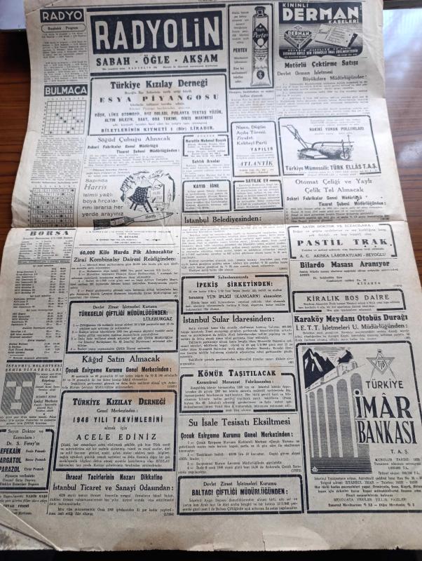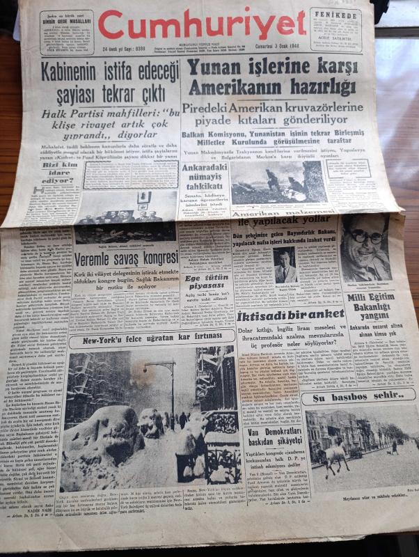 Cumhuriyet Gazetesi - 3 Ocak 1948 - Bizi Kim İdare Ediyor Yazan Nadir Nadi Köşe Yazısı - Kabinenin İstifa Edeceği Şayiası Tekrar Çıktı - Yunan İşlerine Karşı Amerika'nın Hazırlığı - Veremle Savaş Kongresi - Amerikan Malzemesi İle Yapılacak Yollar - Avrupa'nın En Çok Nefret Edilen Kadını Romanya Dış Bakanı Anna Pauker - Edebiyat Bahisleri Yazan İsmail Habib Sevük - Van Gölünde Çalışacak Yeni Gemi - Dağlar Delinirken Yazan Rikkat Asım Köknar Yazı Dizisi - Ortaşarkın Göbeğinde Bir Sovyet Volkanı - Zenginlik Ve Şefkat Yazan Burhan Felek Köşe Yazısı - Eminönü Halkevinde Hastabakıcılık Kursu Fotoğraf - 1947 1948 Yunus Nadi Mükafatı En Güzel Hikaye - Minyatür Yazan Ayfer Sakarya - Unkapanı İle Hal Arasında Binalar İstimlak Edilirken - Yeni Ses Tiyatrosunda Büyük Revü Opereti Hoşgör - İki Cingöz Haremde Filmi İpek Sinemasında - Beşiktaş Bratislava Maçının Bozuk Havaya Rastlaması İyi Olmadı - Safiye Ayla Borsa Kıraathanesinde - Radyolin Diş Macunu - Türkiye İmar Bankası - Bugünkü Radyo Programı, Yunus Nadi tarafından kaleme alınmıştır. Cumhuriyet Gazetesi - 3 Ocak 1948 - Bizi Kim İdare Ediyor Yazan Nadir Nadi Köşe Yazısı - Kabinenin İstifa Edeceği Şayiası Tekrar Çıktı - Yunan İşlerine Karşı Amerika'nın Hazırlığı - Veremle Savaş Kongresi - Amerikan Malzemesi İle Yapılacak Yollar - Avrupa'nın En Çok Nefret Edilen Kadını Romanya Dış Bakanı Anna Pauker - Edebiyat Bahisleri Yazan İsmail Habib Sevük - Van Gölünde Çalışacak Yeni Gemi - Dağlar Delinirken Yazan Rikkat Asım Köknar Yazı Dizisi - Ortaşarkın Göbeğinde Bir Sovyet Volkanı - Zenginlik Ve Şefkat Yazan Burhan Felek Köşe Yazısı - Eminönü Halkevinde Hastabakıcılık Kursu Fotoğraf - 1947 1948 Yunus Nadi Mükafatı En Güzel Hikaye - Minyatür Yazan Ayfer Sakarya - Unkapanı İle Hal Arasında Binalar İstimlak Edilirken - Yeni Ses Tiyatrosunda Büyük Revü Opereti Hoşgör - İki Cingöz Haremde Filmi İpek Sinemasında - Beşiktaş Bratislava Maçının Bozuk Havaya Rastlaması İyi Olmadı - Safiye Ayla Borsa Kıraathanesinde - Radyolin Diş Macunu - Türkiye İmar Bankası - Bugünkü Radyo Programı adlı eser Türkçe dilindedir.