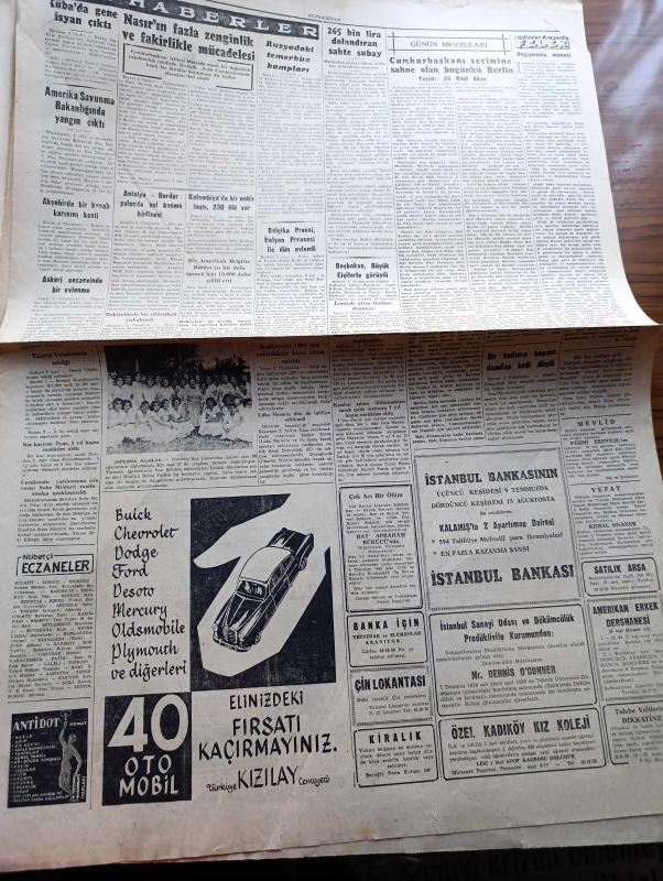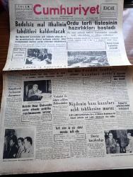 Cumhuriyet Gazetesi - 3 Temmuz 1959 - Bedelsiz Mal İthalinin Tahditleri Kaldırılacak - Ordu Terfi Listesinin Hazırlıkları Başladı - Türk İş Başkanı Nuri Beşer Fotoğrafı - Türk Fransız Konsolidasyon Anlaşması - Bir Jet Uçağımız Düştü İki Pilot Şehit - İstanbul Üniversitesi Rektörü Sıddık Sami Onar Üniversite Çatısı Altında Politika Yapılmamasını İstiyor - İsmet İnönü Basın Toplantısı Yapacak - Fuat Köprülü Amerika'dan Döndü - Niğde'nin Bazı Kazaları Açlık Tehlikesine Maruz - Kavunlu'nun Köprüsü Yazan Fakir Baykurt - Küba'daki İhtilalin İçyüzü Viva Castro Yazı Dizisi - Küba'da Gene İsyan Çıktı - Belçika Prensi İtalyan Prensesi İle Dün Evlendi - Bir Amerikalı Brigitte Bardot'yu Bir Defa Öpmek İçin 10.000 Dolar Teklif Etti - Uluç Ali Yazan Halikarnas Balıkçısı Yazı Dizisi - Hollywood'un En Meşhur Dansörü Fred Astaire Kusurlarını Sayıyor - Aşık Veysel Gecesi Fenerbahçe Kulübü Reisi Agah Erozan Dün İstifa Etti - Tramplen Müsabakasını Utku Altuğ Kazandı - Susurluk Şekerspor Şampiyon Oldu adlı eser, Kitap > Süreli Yayınlar > Gazeteler > Türkiye > Genel > Günlük kategorisinde İkinci El olarak satıştadır.