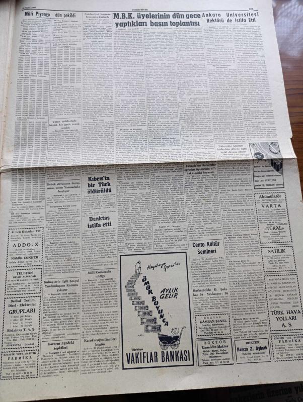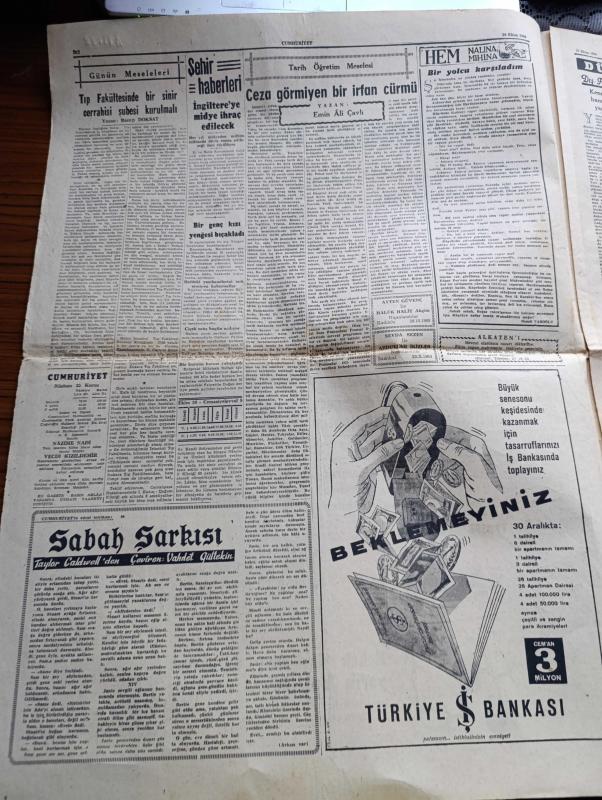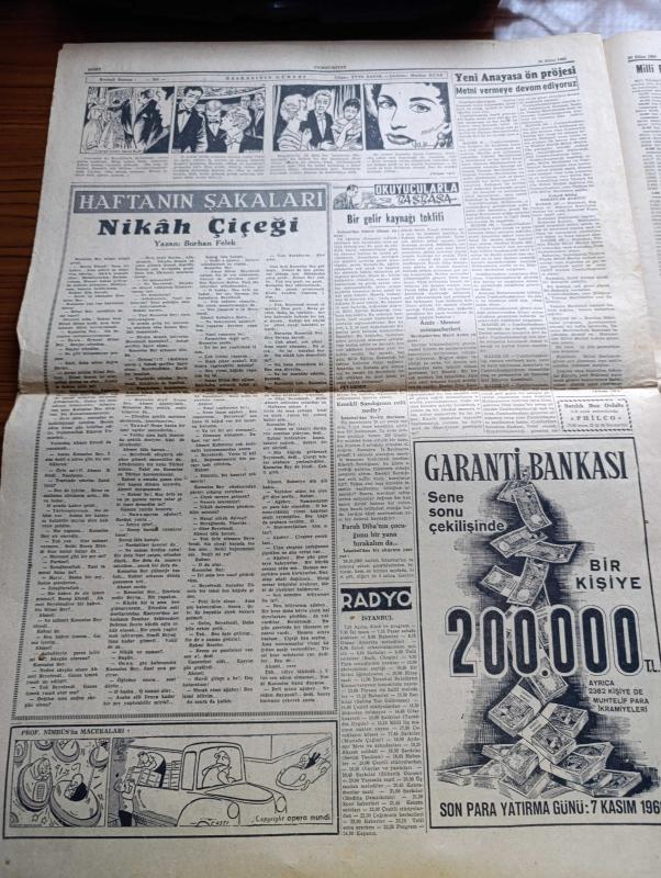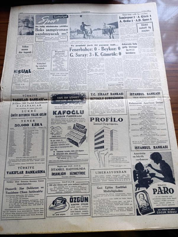 Cumhuriyet Gazetesi - 30 Ekim 1960 - Ankara Üniversitesi Rektörü Suut Kemal Yetkin De İstifa Etti - Yanlış Adım Düzeltilir Yazan Nadir Nadi Köşe Yazısı - Cumhuriyet Bayramı Heyecanla Kutlandı - Milli Birlik Komitesi Üyelerinin Dün Gece Yaptıkları Basın Toplantısı - Vatan Caddesinde Büyük Bir Geçit Resmi Yapıldı - Bebek Davasının Duruşması Yarın Yassıadada Başlıyor - Sabah Şarkısı Yazan Taylor Caldwell Yazı Dizisi - Kuzey Afrika'daki Tehlike Komünizm Değil Cezayir Savaşlarıdır - Başkan Adayı Nixon'a Yumurta Ve Domates Atıldı - Mutlu Akümülatör - Haftanın Şakaları Nikah Çiçeği Yazan Burhan Felek - Profesör Nümbüs'ün Maceraları Çizgi Roman - İstanbul Radyosu Programı - Kıbrıs Türk Kurumları Federasyonu Başkanı Rauf Denktaş İstifa Etti - CENTO Kültür Semineri - Basketbolda Darüşşafaka 56 Modaspor 56 - Beş Klüp Müsabakadan Çekildiler Boks Şampiyonası Yapılmayacak Mı - Galatasaray 3 Karagümrük 0- Yelken Sezonu Dün Kapandı - Profilo Demir Fabrikası - Fenerbahçe 0 Beykoz 0 adlı eser, Kitap > Süreli Yayınlar > Gazeteler > Türkiye > Genel > Günlük kategorisinde İkinci El olarak satıştadır.