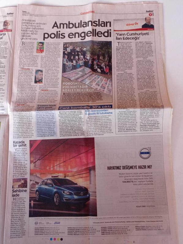 Cumhuriyet Gazetesi - 30 Ekim 2015 - Osmanlı Değil Fener Alayı - Sultan Özentileri - Trabzonspor Başkanı İbrahim Hacıosmanoğlu Hakemi Statta Rehin Aldı - Ahmet Davutoğlu'na Diyarbakır Şoku - 29 Ekim Cumhuriyet Bayramı adlı eser, Kitap > Süreli Yayınlar > Gazeteler kategorisinde İkinci El olarak satıştadır.