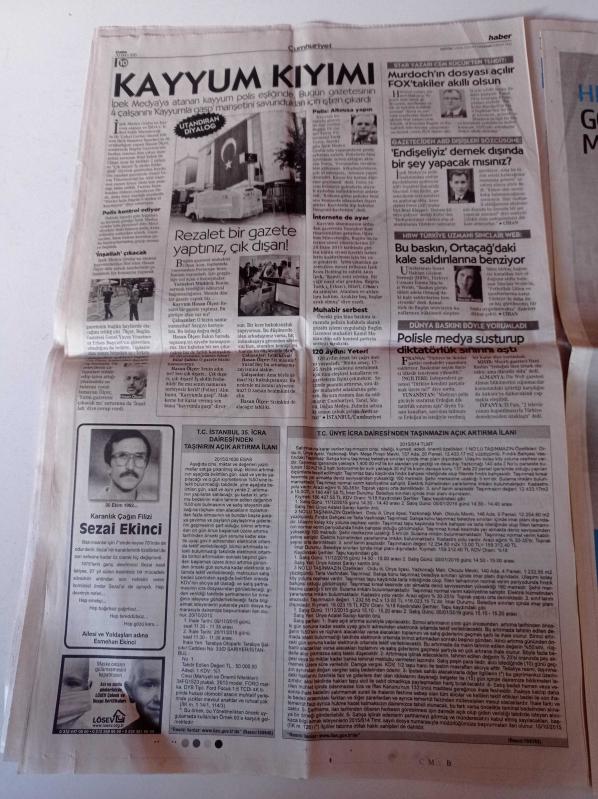 Sayfa Boyutu: 38*56cm Sayfa Sayısı: 22 Cumhuriyet Gazetesi Yıpranma, sararmalar, kupon kesiği ve yırtılmalar zamana bağlı olarak görülebilir