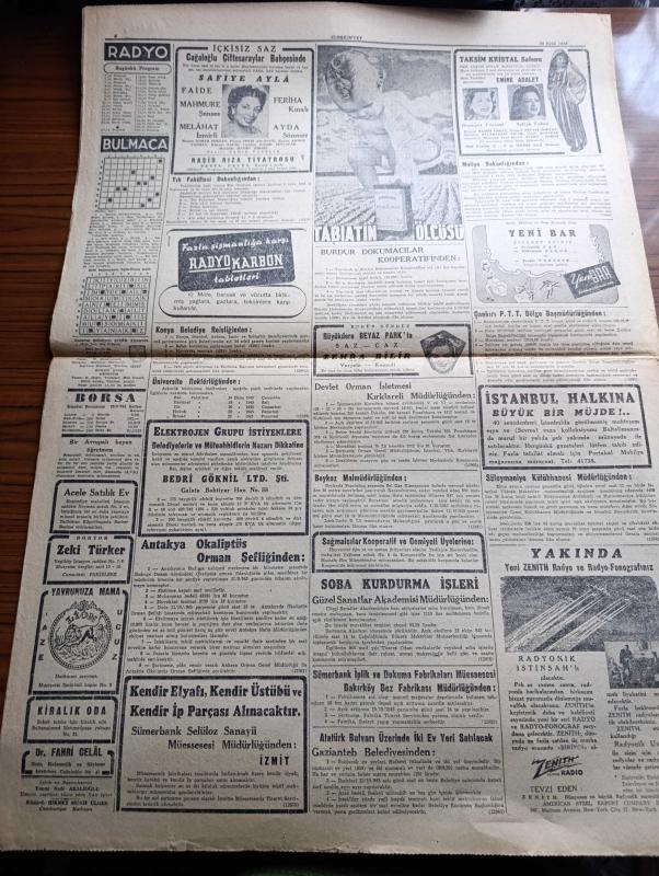 Cumhuriyet Gazetesi - 30 Eylül 1945 - Faizden Vergi Yazan Nadir Nadi Başmakale - Milli Savunma Bakanlığı Masraflarında Mühim Tenzilat - Batavya'da İsyan - Pearl Harbor'da Japonya'nın Kayıtsız Şartsız Teslim Oluşu Haberi Üzerine Yapılan Şehrayin Fotoğraf - Romanya'da Normal İdare Kuruluyor - Atletizm Müsabakası - Bugün Fener Stadında Milletlerarası Yarışlar Yapılıyor - Cemal Nadir Karikatür - Fuat Köprülü İstifa Etmiyor - Haftanın Şakaları Yazan Burhan Felek - Yurtiçinde 2000 Kilometre Yazan Hıfzı Veldet Yazı Dizisi - Şehir Dram Tiyatrosunda İlk Eser Koriolanus Yazan Metin Toker - Hamiyet Yüceses Ve Safiye Tokay Taksim Kristal Salonunda - Safiye Ayla Cağaloğlu Çiftesaraylar Bahçesinde - Bugünkü Radyo Programı - Fazla Şişmanlığa Karşı Radyo Karbon - Zehra Bilir Büyükdere Beyazparkta - Borsa adlı eser, Kitap > Süreli Yayınlar > Gazeteler > Türkiye > Genel > Günlük kategorisinde İkinci El olarak satıştadır.