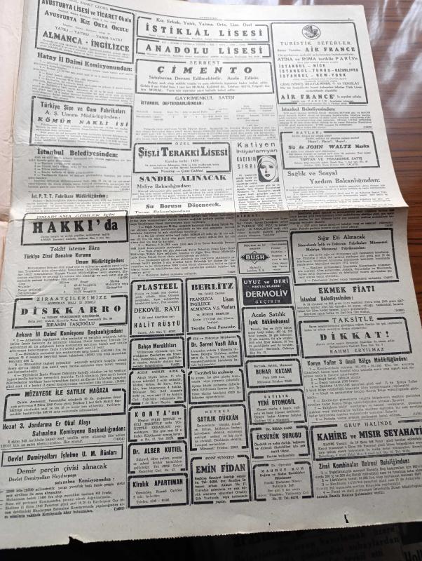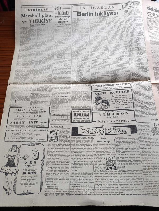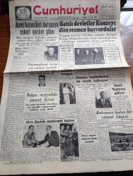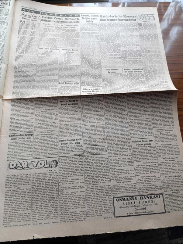 Cumhuriyet Gazetesi - 30 Eylül 1948 - Amerika Akdeniz Birliğine Muarız Değildir Yazan Abidin Daver Köşe Yazısı - Amerika'nın Batı Avrupa'ya Askeri Yardım Planı - Bağımsızların Seçim Mücadelesi Başladı - Abaza Basri'nin Muhakemesi Başlıyor - Batılı Devletler Konseye Dün Resmen Başvurdular - Solcu Hocaların Duruşması - Sanıklardan Behice Boran Mahkemede Fotoğraf - İsmet İnönü Trakya'ya Gidiyor - Süvari Ekibimiz Ankara'da Törenle Karşılandı - Bakımsız Kalan Bir Cennet Köşesi Aband - Marshall Planı Ve Türkiye Yazan Osman Okyar - Büyük Aşk Saray Ve İnci Sinemasında - Dar Yol Yazan Peride Celal Yazı Dizisi - Mıntakavi Anlaşma Yazan Ömer Rıza Doğrul Köşe Yazısı - Doğru İse Yazan Burhan Felek Köşe Yazısı - Küçük Hikaye Kegam Karabet Nişaburyan Efendi Yazan Fahri Celal - Safiye Ayla Hamiyet Yüceses Şerif İçli Tepebaşı Bahçesinde - İstiklal Lisesi - Anadolu Lisesi - Şişli Terakki Lisesi - Avusturya Lisesi Ve Ticaret Okulu - Seiberling Lastikleri - Frigidaire Buzdolabı - Bugünkü Radyo Programı adlı eser, Kitap > Süreli Yayınlar > Gazeteler > Türkiye > Genel > Günlük kategorisinde İkinci El olarak satıştadır.