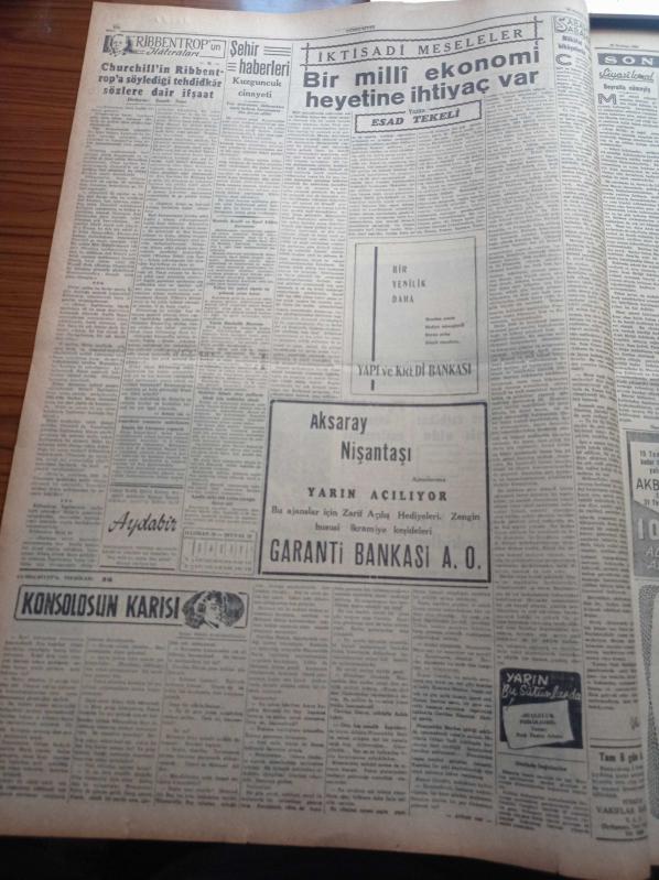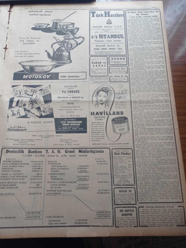 Cumhuriyet Gazetesi - 30 Haziran 1954 - Meclis Bugün Mühim Bir Toplantı Yapıyor - Seçim Kanunu Tadilatı Ve Kırşehirin Kaza Haline Getirilmesi - Tanzim Satış Yerlerinde Dün Şeker Satışı Başladı - Memurların Tasfiyesi İşi Demokrat Parti Meclis Grubunda - Rami Sırtlarında Dün Yapılan Askeri Tatbikat Çok Başarılı Oldu - Bugün Güneş Tutulacak - Ribbentrop'un Hatıraları Yazı Dizisi - Esad Tekeli - İngiltere Dışişleri Vekili Anthony Eden Türkiye'yi Ziyareti - Mithatpaşa Stadında Yapılacak Spor Festivali - Denizcilik Bayramı'nda Yapılacak Müsabakalar - Meşhurlarımızın Garip İnanışları Yazı Dizisi - Çallı İbrahim - Resimli Romanımız Ecel Yenisi- Dünya Kupası - FIFA'nın Bize Çıkardığı Müşkülat - Motokov Emaye Mutfak Eşyaları - Havilland Krem - Dört Başı Mamur Sanatkarlarımızdan Lale Oraloğlu Puro Tuvalet Sabunları Kullanıyorum Diyor - Reks Atom Ve Makarna, Yunus Nadi tarafından kaleme alınmıştır. Cumhuriyet Gazetesi - 30 Haziran 1954 - Meclis Bugün Mühim Bir Toplantı Yapıyor - Seçim Kanunu Tadilatı Ve Kırşehirin Kaza Haline Getirilmesi - Tanzim Satış Yerlerinde Dün Şeker Satışı Başladı - Memurların Tasfiyesi İşi Demokrat Parti Meclis Grubunda - Rami Sırtlarında Dün Yapılan Askeri Tatbikat Çok Başarılı Oldu - Bugün Güneş Tutulacak - Ribbentrop'un Hatıraları Yazı Dizisi - Esad Tekeli - İngiltere Dışişleri Vekili Anthony Eden Türkiye'yi Ziyareti - Mithatpaşa Stadında Yapılacak Spor Festivali - Denizcilik Bayramı'nda Yapılacak Müsabakalar - Meşhurlarımızın Garip İnanışları Yazı Dizisi - Çallı İbrahim - Resimli Romanımız Ecel Yenisi- Dünya Kupası - FIFA'nın Bize Çıkardığı Müşkülat - Motokov Emaye Mutfak Eşyaları - Havilland Krem - Dört Başı Mamur Sanatkarlarımızdan Lale Oraloğlu Puro Tuvalet Sabunları Kullanıyorum Diyor - Reks Atom Ve Makarna adlı eser Türkçe dilindedir.