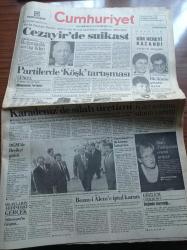 Cumhuriyet Gazetesi - 30 Haziran 1992 - Anadolu Liseleri Sınav Sonuçları - Uluslararası İstanbul Festivali - Devlet Güvenlik Mahkemesinde İsmail Beşikçi Günü - Pamukkale'ye İlk Kazma Erdal İnönü'den - Cezayir Devlet Başkanı Budiaf Üniformalı Bir Kişi Tarafından Vurularak Öldürüldü - Partilerde Köşk Tartışması - Kürt Sorunu Sıkıntı Yarattı - Karadeniz'de Silah Üretimi adlı eser, Kitap > Süreli Yayınlar > Gazeteler kategorisinde İkinci El olarak satıştadır.