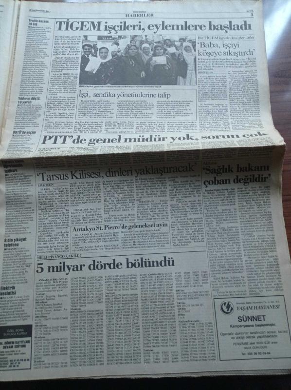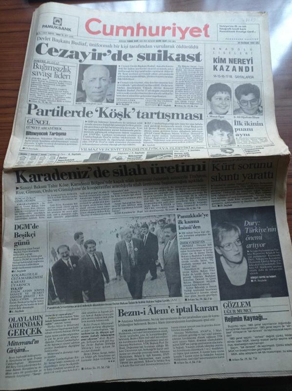 Cumhuriyet Gazetesi - 30 Haziran 1992 - Anadolu Liseleri Sınav Sonuçları - Uluslararası İstanbul Festivali - Devlet Güvenlik Mahkemesinde İsmail Beşikçi Günü - Pamukkale'ye İlk Kazma Erdal İnönü'den - Cezayir Devlet Başkanı Budiaf Üniformalı Bir Kişi Tarafından Vurularak Öldürüldü - Partilerde Köşk Tartışması - Kürt Sorunu Sıkıntı Yarattı - Karadeniz'de Silah Üretimi adlı eser Türkçe dilindedir.