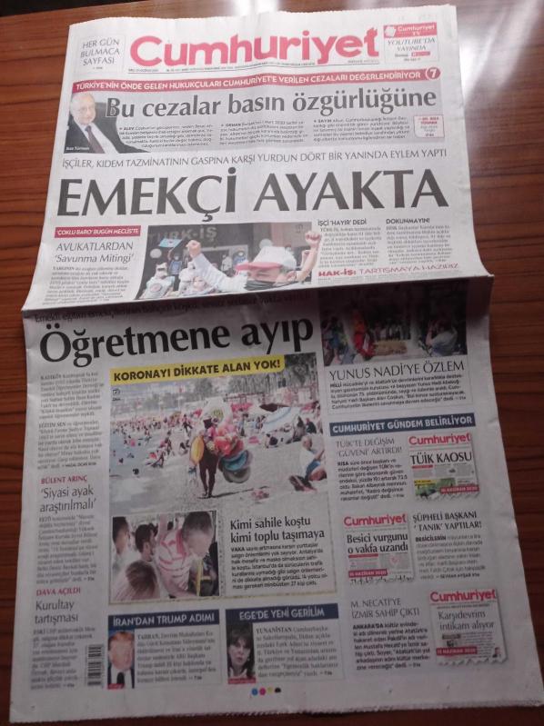 Cumhuriyet Gazetesi - 30 Haziran 2020 - Obradovic'in Manevi Oğlu Jasikevicius'un Aklı Barcelona'da - Ahmet Nur Çebi Beşiktaş'ı Bırakmayalım - Rock Grubu Rolling Stones Trump'ı Son Kez Uyardı - Beyonce'dan Oy Çağrısı - İşçiler Kıdem Tazminatı Gaspına Karşı Ayakta - Koronayı Dikkate Alan Yok - Yunus Nadi'ye Özlem - Bülent Arınç Siyasi Ayak Araştırılmalı - Çoklu Baro Bugün Meclis'te adlı eser Türkçe dilindedir.