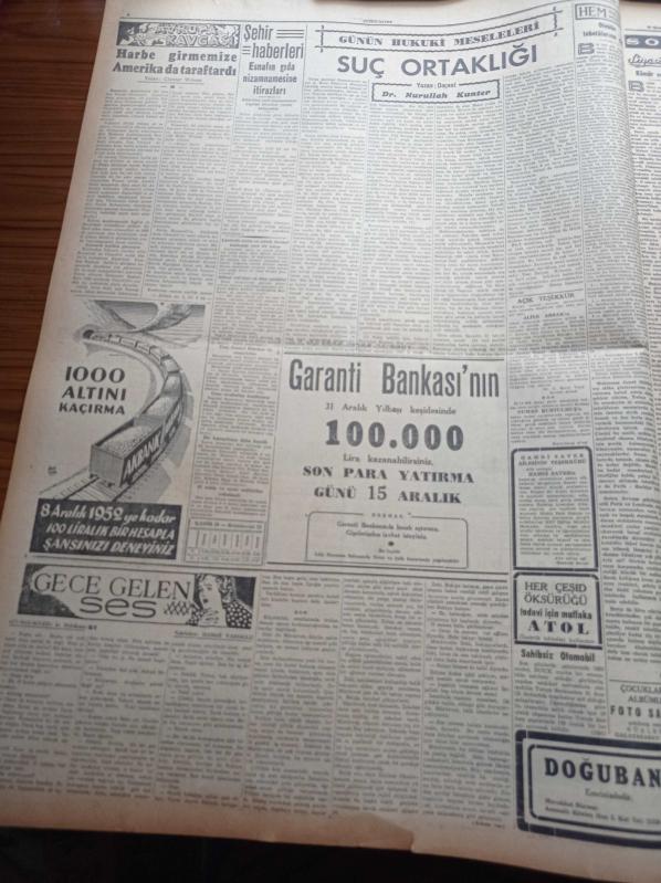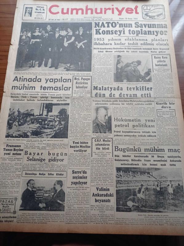 Cumhuriyet Gazetesi - 30 Kasım 1952 - Atina'da Yapılan Mühim Temaslar - Cumhurbaşkanı Celal Bayar - Yunan Kralı Majeste Paul - Ahmet Emin Yalman'a Suikast İle İlgili Malatya'da Tevkifler Devam Etti - NATO'nun Savunma Konseyi Toplanıyor - Kuzey Kore Şiddetle Bombalandı - Mühim Maç Galatasaray Fenerbahçe - Maçın Biletleri Karaborsada 90 Liraya Satılıyordu - Mareşal Papagos Atatürkten Bahsediyor - Sümerbank - Nasıl Koca Bulunur - Churchill 78 Yaşında - Irak'ın İç İşlerine İran'ın Müdahalesi - Stalin - Vali Fahrettin Kerim Gökay'ın Ankara'daki Beyanatı - Hamiyet Yüceses Her Akşam Taksim Kristal'de - Coleman Petrol Sobaları - Elna Dikiş Makinaları - Radyolin Diş Macunu - Gripin - Nacar Satakeri adlı eser, Kitap > Süreli Yayınlar > Gazeteler > Türkiye > Genel > Günlük kategorisinde İkinci El olarak satıştadır.