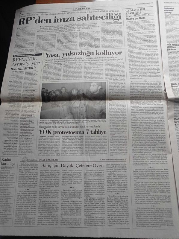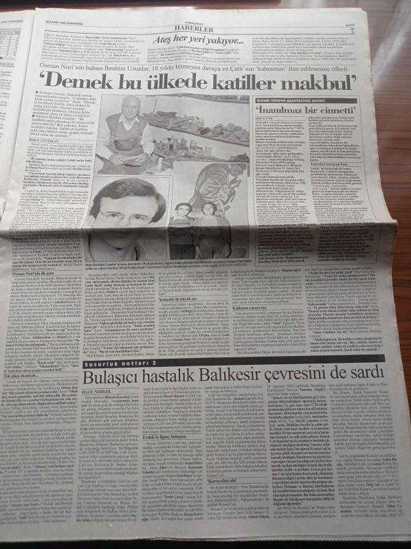 Cumhuriyet Gazetesi - 30 Kasım 1996 - Aktör Fikret Hakan'a Saldırı - Beşiktaşlı Alpay Özalan'a Büyük Ödül - Fenerbahçe'de Kavgalı Antrenman - Refah Partisi Hilafet Düzeni İstedi - Öğretmenevleri Mafyaya Çeteye Peşkeş Çekilecek - Doğu Perinçek'ten İddia Turgut Özal Gizli Raporları Bush'a Ulaştırdı - Ordu'da Dinleme Cihazı Aranıyor - Bahçelievler Katliamı - Mesut Yılmaz'a Saldırı Türkiye Bağlantılı - Abdullah Çatlı adlı eser Türkçe dilindedir.