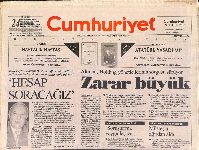 Cumhuriyet Gazetesi 30 Mayıs 2000 - Galatasaray'da Operasyonu - Futbolda Trilyon Devri GZ2997, en son 19 gün önce güncellenmiştir.