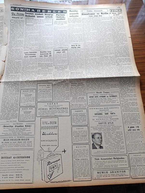 Cumhuriyet Gazetesi - 30 Temmuz 1959 - Ortadirek Yazan Yaşar Kemal Yazı Dizisi - Nadir Nadi Köşe Yazısı - Dört Gazeteci Daha Dün Hapse Mahkum Edildi - Ahmet Emin Yalman - Selami Akpınar - Naim Tiralı - İsmet İnönü'nün Dokunulmazlığı - Çocuk Felci Vakaları Artıyor - Abdülhamid'e Yapılan Suikast Yazan Emin Ali Şavlı Yazı Dizisi - Hollywood'dan Stüdyo Temsilcisi Oscar Lax Geldi - Londra Festivalinde Üniversitelerimiz Başarı Kazandılar - Burhan Felek Köşe Yazısı - Paris'te Kalem Modası - Uluç Ali Yazan Halikarnas Balıkçısı Yazı Dizisi - Ruhi Bahisler Yazan Doktor Halis Özgü - Ankara İstanbul Radyosu Programı - Kitap Gazete Ve Benzerlerinin İthali Serbest - Kızıllar Laos'a Girdiler - Ali Sami Yen'i Hürmetle Anıyoruz - Fenerbahçe Beşiktaş Ve Adalet Sezonu Açıyorlar - Karagümrük Dün Yeni Sezonu Açtı - Fenerbahçe Tarafından Satışa Çıkarılan Kaleci Şükrü Ersoy - Milli Güreşçimiz Hamit Kaplan'a Profesyonellik Teklif Edildi - Balkan Oyunları Gelecek Yıl Türkiye'de Yapılacak - Harem Deniz Kulübü, Yunus Nadi tarafından kaleme alınmıştır. Cumhuriyet Gazetesi - 30 Temmuz 1959 - Ortadirek Yazan Yaşar Kemal Yazı Dizisi - Nadir Nadi Köşe Yazısı - Dört Gazeteci Daha Dün Hapse Mahkum Edildi - Ahmet Emin Yalman - Selami Akpınar - Naim Tiralı - İsmet İnönü'nün Dokunulmazlığı - Çocuk Felci Vakaları Artıyor - Abdülhamid'e Yapılan Suikast Yazan Emin Ali Şavlı Yazı Dizisi - Hollywood'dan Stüdyo Temsilcisi Oscar Lax Geldi - Londra Festivalinde Üniversitelerimiz Başarı Kazandılar - Burhan Felek Köşe Yazısı - Paris'te Kalem Modası - Uluç Ali Yazan Halikarnas Balıkçısı Yazı Dizisi - Ruhi Bahisler Yazan Doktor Halis Özgü - Ankara İstanbul Radyosu Programı - Kitap Gazete Ve Benzerlerinin İthali Serbest - Kızıllar Laos'a Girdiler - Ali Sami Yen'i Hürmetle Anıyoruz - Fenerbahçe Beşiktaş Ve Adalet Sezonu Açıyorlar - Karagümrük Dün Yeni Sezonu Açtı - Fenerbahçe Tarafından Satışa Çıkarılan Kaleci Şükrü Ersoy - Milli Güreşçimiz Hamit Kaplan'a Profesyonellik Teklif Edildi - Balkan Oyunları Gelecek Yıl Türkiye'de Yapılacak - Harem Deniz Kulübü adlı eser Türkçe dilindedir.