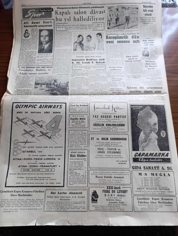 Cumhuriyet Gazetesi - 30 Temmuz 1959 - yaraya parmak yazan Nadir Nadi Başmakale - Dört Gazeteci Ahmet Emin Yalman Selami Akpınar Naim Tirali ve kervan dergisi sahibi Azmi Özcan Dün Hapse Mahkum Edildi - İsmet İnönü'nün Dokunulmazlığı - Çocuk Felci Vakaları Artıyor - Abdülhamid'e Yapılan Suikast Yazan Emin Ali Şavlı Yazı Dizisi - Hollywood'dan Stüdyo Temsilcisi Oscar Lax Geldi - Londra Festivalinde Üniversitelerimiz Başarı Kazandılar - İnce Mehmet yazan Yaşar Kemal Yazı Dizisi - Uluç Ali Yazan Halikarnas Balıkçısı Yazı Dizisi - Ruhi Bahisler Yazan Doktor Halis Özgü - Ankara İstanbul Radyosu Programı - Kitap Gazete Ve Benzerlerinin İthali Serbest - Kızıllar Laos'a Girdiler - Ali Sami Yen'i Hürmetle Anıyoruz - Fenerbahçe Beşiktaş Ve Adalet Sezonu Açıyorlar - Karagümrük Dün Yeni Sezonu Açtı - Fenerbahçe Tarafından Satışa Çıkarılan Kaleci Şükrü Ersoy - Milli Güreşçimiz Hamit Kaplan'a Profesyonellik Teklif Edildi - Balkan Oyunları Gelecek Yıl Türkiye'de Yapılacak - Harem Deniz Kulübü adlı eser, Kitap > Süreli Yayınlar > Gazeteler > Türkiye > Genel > Günlük kategorisinde İkinci El olarak satıştadır.
