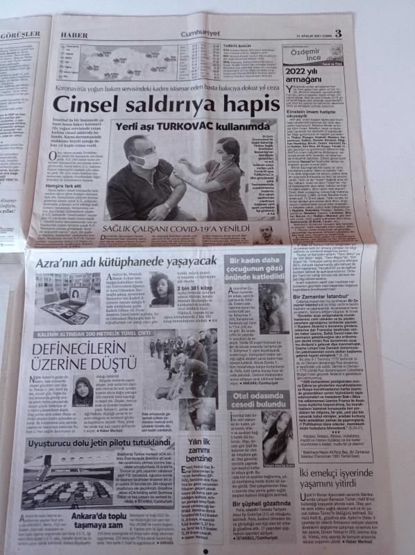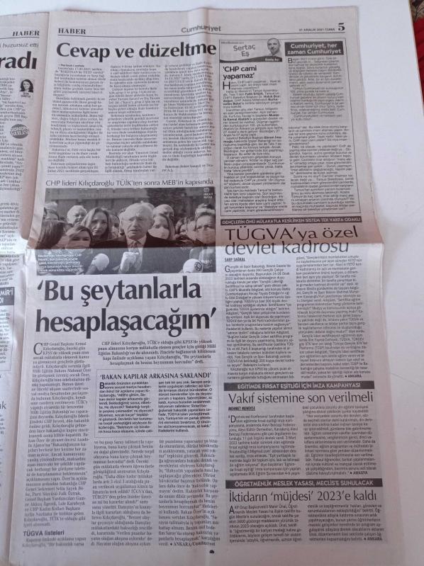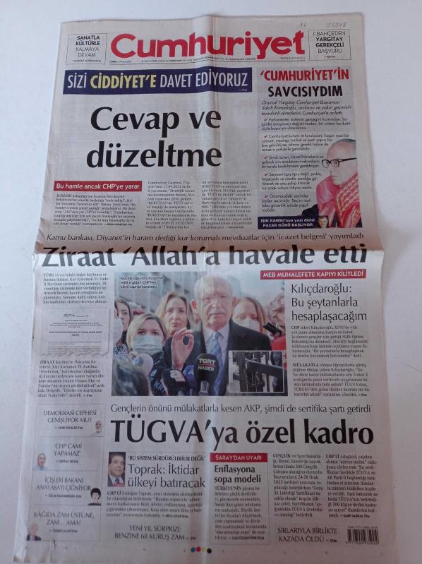 Cumhuriyet Gazetesi - 31 Aralık 2021 - Ekrem İmamoğlu'ndan Türkiye Milli Olimpiyat Komitesi Başkanı Uğur Erdener'e Ziyaret - Yerli Aşı Turkovac Kullanımda - Sabih Kanadoğlu Cumhuriyet'in Savcısıydım - TÜGVA 'ya Özel Kadro - MEB Muhalefete Kapıyı Kilitledi - Erdoğan Toprak - Kemal Kılıçdaroğlu adlı eser Türkçe dilindedir.