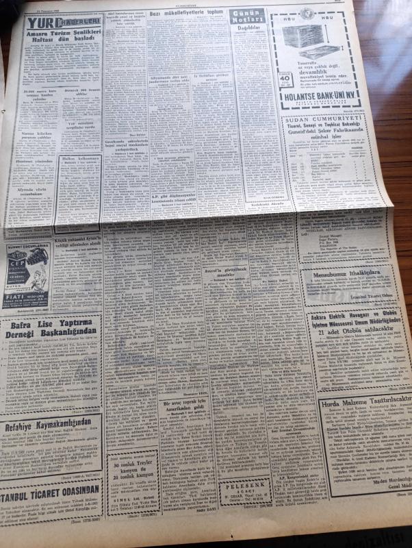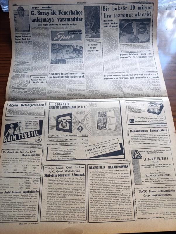 Cumhuriyet Gazetesi - 31 Temmuz 1962 - Bazı Mükellefiyet Lefke Toplum Kalkınmasına Halk Da Katılacak - 4 Yıldan Beri Dağda Olan Kel Ali Jandarmaya Teslim Oldu - Akıl Hastalarının Masa Başında Çatal Ve Bıçakla Yemek Yemelerine İzin Verildi - Adalet Partisi Gibi Düşünmeyenler Komünizmle İtham Edildi - Gecenin Ucundaki Işık Yazan Peride Celal Yazı Dizisi - Açık Rejimin Gizli Gerçekleri Yazan İlhan Selçuk Köşe Yazısı - Tramvay Rayları Sonbaharda Kaldırılacak - Dünya Sanat Tarihinde Türk Donanması Yazan Amiral Afif Büyüktuğrul - İsrail Amerikan Casusu Soblen'i Siyasi Mülteci Olarak Kabul Etmedi - Prenses Margaret'in Kocasının Çektiği Son Fotoğraflar - Bay Oscar Karikatür - Profesör Nümbüs'ün Maceraları Çizgi Roman - Resimli Roman Melun Kız Çizen Yves Sayol Yazı Dizisi - Ergun Meselesi Galatasaray ile Fenerbahçe Anlaşmaya Varamadılar - Okçuluk Federasyonu Başkanı Fazıl Özok Amerika'ya Davet Edildi - Salzburg Futbol Turnuvasına Bir Takımımız Da Çağrılacak - Enternasyonal Basketbol Turnuvası, Yunus Nadi tarafından kaleme alınmıştır. Cumhuriyet Gazetesi - 31 Temmuz 1962 - Bazı Mükellefiyet Lefke Toplum Kalkınmasına Halk Da Katılacak - 4 Yıldan Beri Dağda Olan Kel Ali Jandarmaya Teslim Oldu - Akıl Hastalarının Masa Başında Çatal Ve Bıçakla Yemek Yemelerine İzin Verildi - Adalet Partisi Gibi Düşünmeyenler Komünizmle İtham Edildi - Gecenin Ucundaki Işık Yazan Peride Celal Yazı Dizisi - Açık Rejimin Gizli Gerçekleri Yazan İlhan Selçuk Köşe Yazısı - Tramvay Rayları Sonbaharda Kaldırılacak - Dünya Sanat Tarihinde Türk Donanması Yazan Amiral Afif Büyüktuğrul - İsrail Amerikan Casusu Soblen'i Siyasi Mülteci Olarak Kabul Etmedi - Prenses Margaret'in Kocasının Çektiği Son Fotoğraflar - Bay Oscar Karikatür - Profesör Nümbüs'ün Maceraları Çizgi Roman - Resimli Roman Melun Kız Çizen Yves Sayol Yazı Dizisi - Ergun Meselesi Galatasaray ile Fenerbahçe Anlaşmaya Varamadılar - Okçuluk Federasyonu Başkanı Fazıl Özok Amerika'ya Davet Edildi - Salzburg Futbol Turnuvasına Bir Takımımız Da Çağrılacak - Enternasyonal Basketbol Turnuvası adlı eser Türkçe dilindedir.