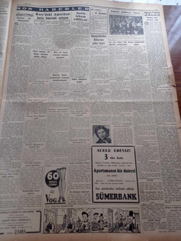 Cumhuriyet Gazetesi - 4 Ekim 1952 - İç Politikada Gerginliği İzale İçin Hal Çaresi - Celal Bayar'ın Ardahanlılara Mühim Bir Hitabesi - Amerika Rusya Gerginliği - İngiltere'nin İlk Atom Silahı İnfilak Etti - Öğretmen Ali Ulvi 3 Yıl 4 Ay Hapse Mahkum Oldu - Yeni Sahaflar Çarşısı Dün Açıldı. A. Adnan Adıvar - Kore'deki Amerikan Hava Kuvveti Artıyor - Charlie Chaplin Komünist Partisi Mensubu Olmakla İtham Ediliyor - Bu Sene Nobel Sulh Mükafatı Verilmeyecek - Gangster Alcapone'un Kardeşi Öldü - İzmir Fuarı Nasıl İdare Edilmelidir - Fransa Almanya Milli Maçı Yarın Yapılıyor - Futbolcu İsfendiyarın Durumu - Hamiyet Yüceses - Ferdi Tayfur - Mürüvvet Sim - Sinyör Rafael Larca- Perihan Altındağ Sözeri - GEM Makinaları - Emlak Bankası - Ziraat Bankası - Revue Saatleri - İlham Gencer - Taksim Kristal Salonu adlı eser, Kitap > Süreli Yayınlar > Gazeteler > Türkiye > Genel > Günlük kategorisinde İkinci El olarak satıştadır.