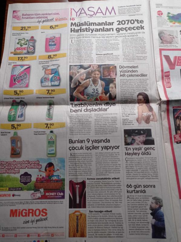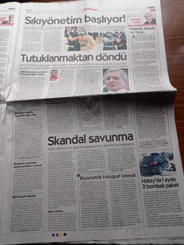 Cumhuriyet Gazetesi - 4 Nisan 2015 - Fenerbahçeli Basketbolcu Lezbiyenim Diye Beni Dışladılar - Eczacıbaşı Ve Vakıfbank'ın Yer Aldığı Şampiyonlar Ligi Dörtlü Finali Başlıyor - Ahmet Davutoğlu Şehit Savcı Mehmet Selim Kiraz'ın Cenaze Törenine Cumhuriyeti Aldırmadı - Özel Güvenlik AKP'nin Eseri - Besteci Söz Yazarı Ve Şarkıcı Kayahan'ı Kaybettik - Berkin Elvan'ı Rahat Bırakın adlı eser Türkçe dilindedir.