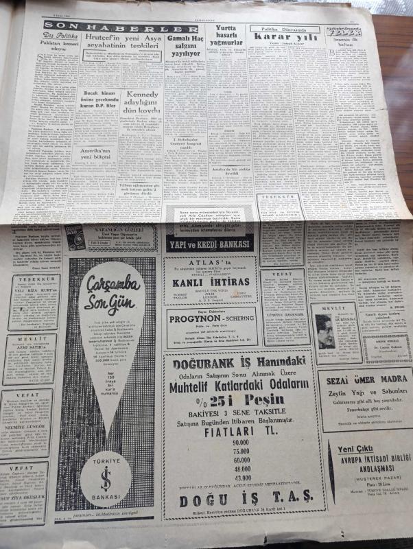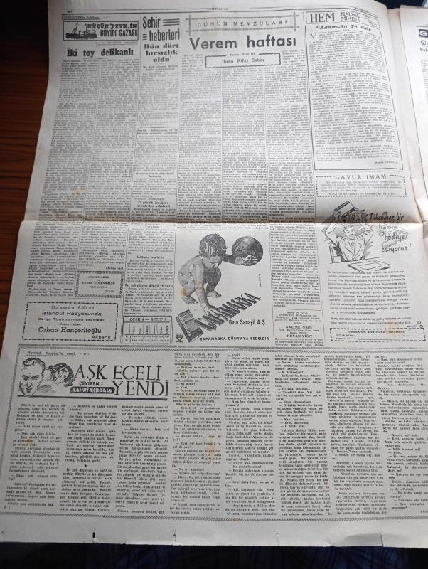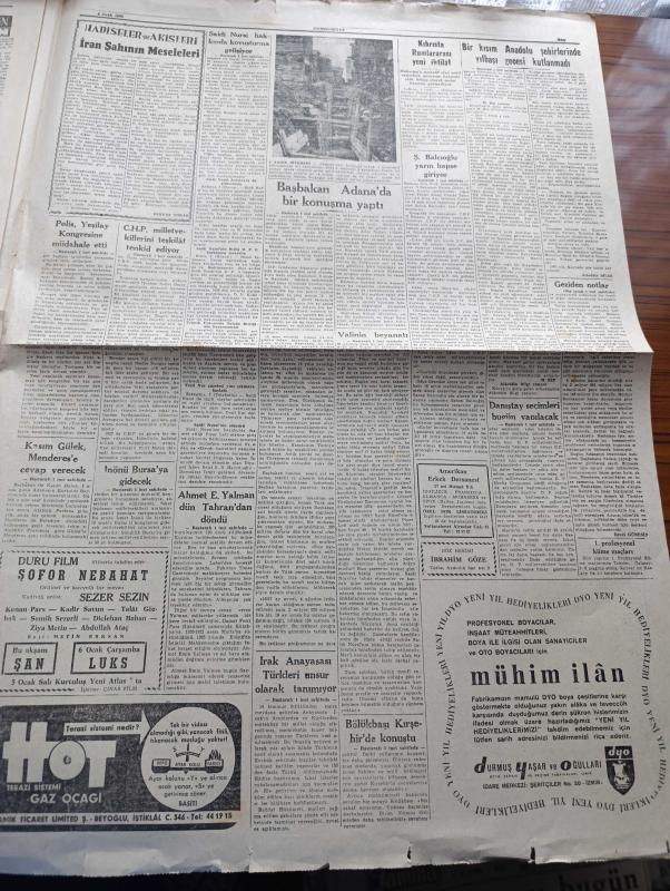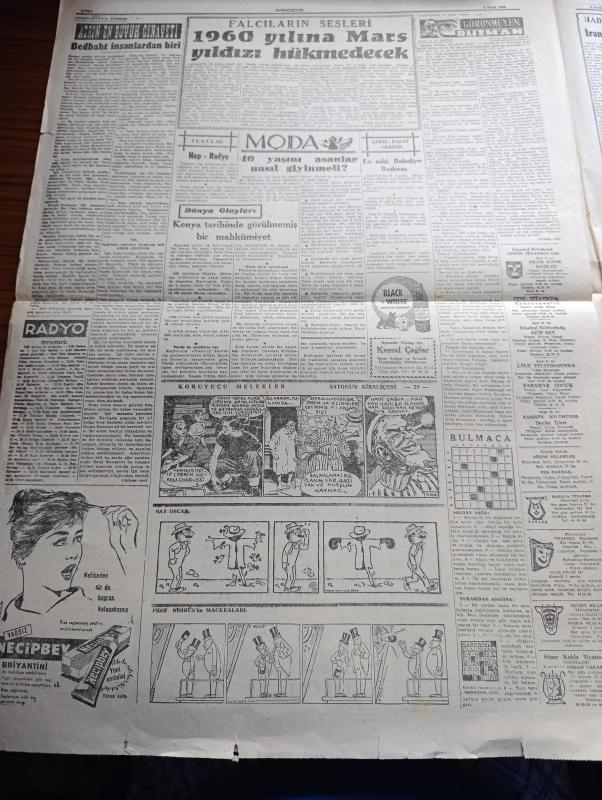 Cumhuriyet Gazetesi - 4 Ocak 1960 - Başbakan Adnan Menderes Adana'da Bir Konuşma Yaptı - Saidi Nursi Hakkında Kovuşturma Gelişiyor - Saidi Nursi'nin Ankara'da Çekilen Son Resmi - Ahmet Emin Yalman Dün Tahran'dan Döndü - Kim Dergisinin Mesul Müdürü Şahap Balcıoğlu Yarın Hapse Giriyor - Bir Kısım Anadolu Şehirlerinde Yılbaşı Kutlanmadı - Polis Yeşilay Kongresine Müdahale Etti - Kızılay'ın Faslılara Yardımı Fotoğraf - Beşiktaş Fenerbahçe'yi Yendi Fotoğraf - Irak Anayasası Türkleri Unsur Olarak Tanımıyor - Küçük Peyk'in Büyük Gazası Yazan A. Cemalettin Saraçoğlu Yazı Dizisi - Türkiye İş Bankası - Amerika'da Kennedy Adaylığını Koydu - Senenin İlk Haftası Yazan Burhan Felek Köşe Yazısı - Kanlı İhtiras Filmi Atlas Sinemasında - Sezai Ömer Madra Zeytinyağı Ve Sabunları - Falcıların Sesleri 1960 Yılına Mars Yıldızı Hükmedecek - Bay Oscar Karikatür - Beşiktaş Fenerbahçe Maçı Hakemi Bulgar Takov Dedi Ki Halk Sahaya Hücum Etti Maçı Eksik Oynattım - Federasyon Asbaşkanı Hakkı Yeten adlı eser, Kitap > Süreli Yayınlar > Gazeteler > Türkiye > Genel > Günlük kategorisinde İkinci El olarak satıştadır.