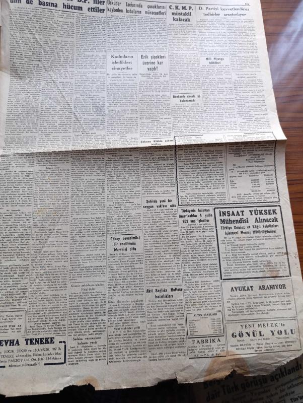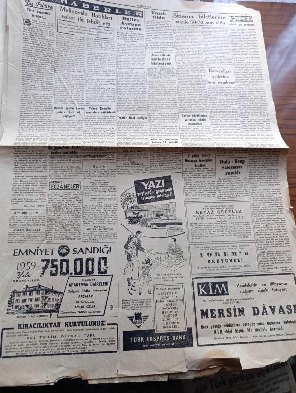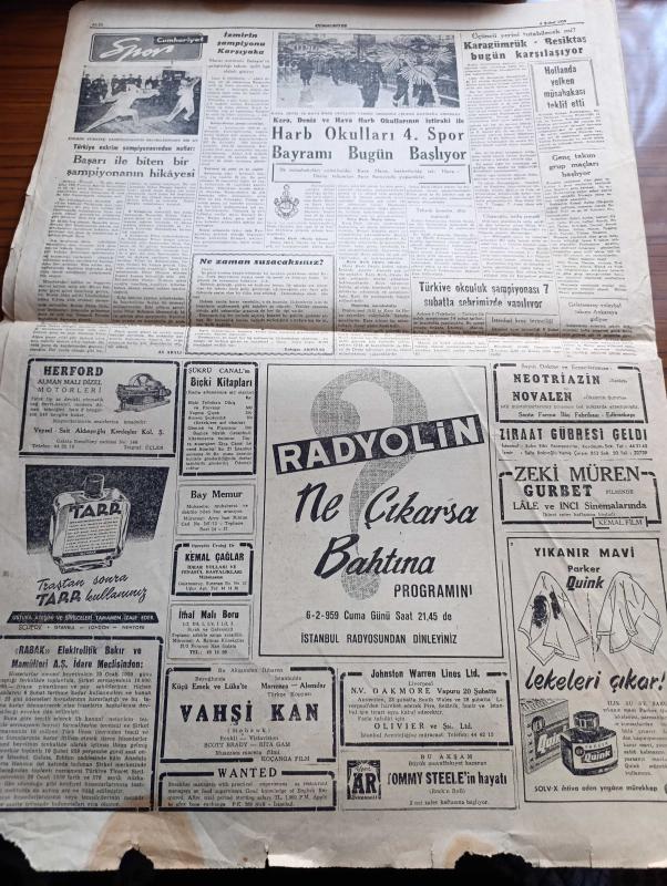 Cumhuriyet Gazetesi - 4 Şubat 1959 - Yazık Oldu Yazan Nadir Nadi Başmakale - Bütçe Encümeninde Demokrat Partililer Dün De Basına Hücum Ettiler - Başbakan Adnan Menderes Park Otelde Demokrat Parti Geçici İl İdare Kurulu Üyeleri İle Birarada Fotoğrafı - Türkiye'de Bulunan Amerikalılar 4 Yılda 252 Suç İşlediler - Üsküdar Sahili İle Kızkulesi Arasında Sur Temelleri Üzerinde Kurulacak 20 Metrelik Atatürk Anıtı - Fatin Rüştü Zorlu Dün Yunan Elçisi İle Görüştü - Sinemasında Biletlerine Yüzde 50 70 Zam Oldu - Şahane Klüpte Çıkan Hadise - Dünyanın İlk Korsan Kruvazörü Gazi Hamidiyenin Şanlı Maceraları Derleyen Cemaleddin Saraçoğlu Yazı Dizisi - Milli Türk Talebe Birliği Kongresi Yeni Bir Çıkmaza Girdi - Uluç Ali Yazan Halikarnas Balıkçısı Yazı Dizisi - Yahya Kemal'in Sandıkları Mühürlendi - Partiye Kaydolma Yazan Burhan Felek Köşe Yazısı - Hula Hoop Yarışması Yapıldı - Radar İceberglere Karşı Giriştiği Mücadeleyi Kaybetti - İstanbul Belediyesi Şehir Tiyatroları Dram Kısmında Köprüden Görünüş adlı eser, Kitap > Süreli Yayınlar > Gazeteler > Türkiye > Genel > Günlük kategorisinde İkinci El olarak satıştadır.