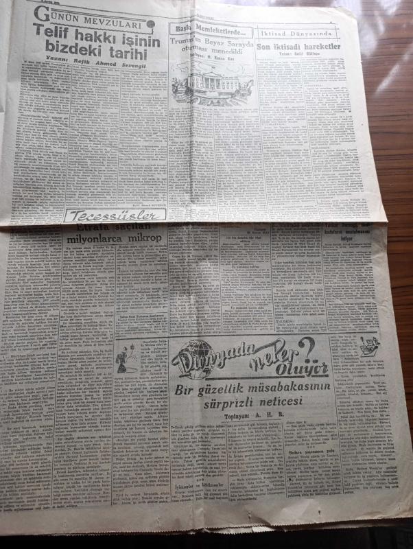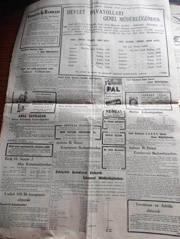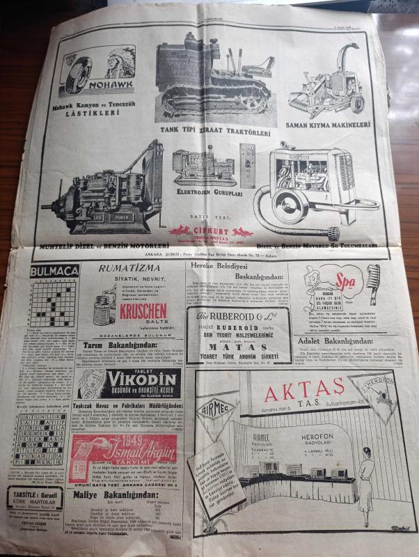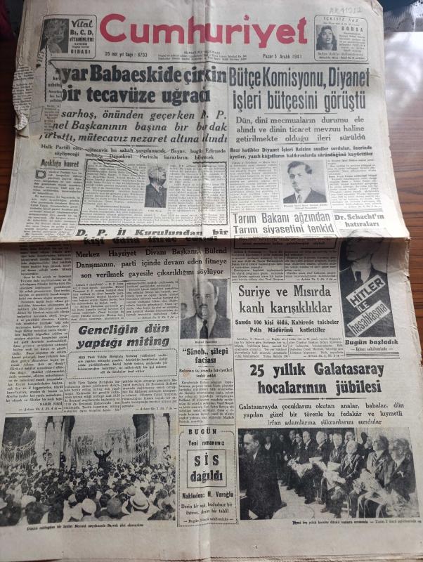 Cumhuriyet Gazetesi - 5 Aralık 1948 - açıklığa hasret yazan Nadir Nadi Başmakale - Celal Bayar babaeski'de çirkin bir tecavüze uğradı - bütçe komisyonu diyanet işleri bütçesini görüştü - tarım bakanı Cavit Oral'ın ağzından tarım siyasetini tenkit - diyanet işleri reisi Ahmet Akseki - Demokrat Parti il kurulumundan Bülent Danışman ihraç edildi - milli Türk Talebe birliğinin kuruluş yıldönümü vesilesiyle yaptığı miting Beyazıt meydanı'nda fotoğraf - 25 yıllık Galatasaray hocalarının jübilesi fotoğraf - Suriye ve Mısır'da kanlı karışıklıklar - haftanın şakaları yazan Burhan Felek - Hitler ile hesaplaşma yazan Dr. Schacht yazı dizisi - Letre İle Ayvaz yazan Falih Rıfkı Atay - Türk musiki üstadlarından Rakım El Kutlu Hoca vefat etti - Ankara'da Namık Kemal töreni - 1948-1949 Yunus Nadi mükafatı Atatürk'e Ait bir hatıra - bir yabancı filmi Taksim sinemasında - Truman'ın beyaz sarayda oturması menedildi toplayan M. Kenan Kan - Müzeyyen Senar Işıl Turkuaz Gazinosunda - Leyla Hüsnü Yusuf Hüsnü adlı eser, Kitap > Süreli Yayınlar > Gazeteler > Türkiye > Genel > Günlük kategorisinde İkinci El olarak satıştadır.