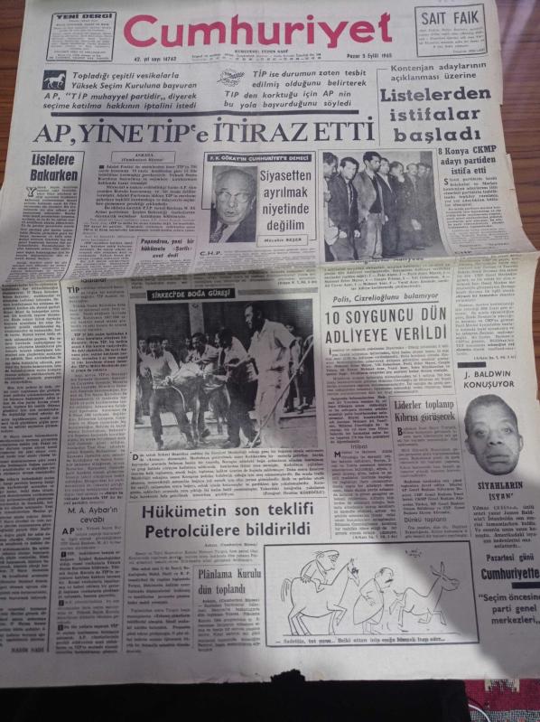 Cumhuriyet Gazetesi - 5 Eylül 1965 - Kurucusu Yunus Nadi - Doğan Nadi - İlhan - Sivas Kongresi Ve Mandacı Morison- Adalet Partisi Yine Türkiye İşçi Partisi'ne İtiraz Etti - Sirkeci'de Boğa Güreşi - Mehmet Ali Aybar'ın Cevabı - 8 Konya Cumhuriyetçi Köylü Millet Partisi Adayı İstifa Etti - Nadir Nadi adlı eser, Kitap > Süreli Yayınlar > Gazeteler kategorisinde İkinci El olarak satıştadır.