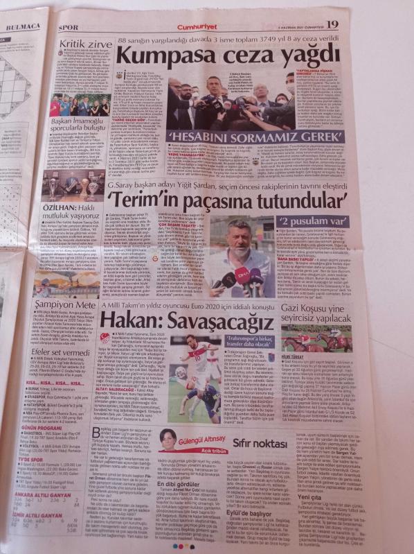 Cumhuriyet Gazetesi - 5 Haziran 2021 - Kumpasa Ceza Yağdı - Anadolu Efes Kulübü Başkanı Tuncay Özilhan - Gezici Köy Enstitüsü Kuruluyor - Cumhuriyet Halk Partisi'ne Özel Savcı - YÖK Başkanı Yekta Saraç Kadınla Tokalaşma - Kalan Müzik Kurucusu Hasan Saltık Sonsuzluğa Uğurlandı adlı eser Türkçe dilindedir.