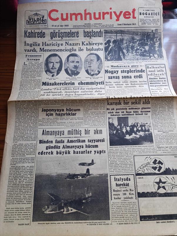 Cumhuriyet Gazetesi - 5 İkinciteşrin (Kasım) 1943 - Fransasız Avrupa Yazan Nadir Nadi Köşe Yazısı - İngiliz Hariciye Nazırı Mister Eden Kahireye Vardı - Kahire'de Görüşmelere Başlandı - Moskova'ya Göre Nogay Steplerinde Savaş Sona Erdi - Şark Cephesinden Resimler - Balkanlar Nasıl İstila Edilecek - Hakaret Davaları Karışık Bir Şekil Aldı - Bir Çok Gazetelerin Mahkemeye Gitmesine Sebep Olan Ali İhsan Sabis Davasının Ankara'ya Nakledilmesi İhtimali Var - Binden Fazla Amerikan Tayyaresi Gündüz Almanya'ya Hücum Ederek Büyük Hasarlar Yaptı - Hukuk Fakültesi Dekanı Sıddık Sami Onar - 2 Büyük Film Fırtınalar Hakimi Ve Mabudenin Kızı Taksim Sinemasında - Devamlı Sulh Arzusu Ve Bazı Mütefekkirler Yazan Profesör Doktor Hıfzı Veldet Köşe Yazısı - Aşkın Doğuşu Yazan Peride Celal Yazı Dizisi - Hak Hukuk Yazan Burhan Felek Köşe Yazısı - Bugünkü Radyo Programı - Arlon Saatleri - Uyuz Ve Deri Kaşıntılarını Dermoliv Çabuk Geçirir - Bugünkü Radyo Programı, Yunus Nadi tarafından kaleme alınmıştır. Cumhuriyet Gazetesi - 5 İkinciteşrin (Kasım) 1943 - Fransasız Avrupa Yazan Nadir Nadi Köşe Yazısı - İngiliz Hariciye Nazırı Mister Eden Kahireye Vardı - Kahire'de Görüşmelere Başlandı - Moskova'ya Göre Nogay Steplerinde Savaş Sona Erdi - Şark Cephesinden Resimler - Balkanlar Nasıl İstila Edilecek - Hakaret Davaları Karışık Bir Şekil Aldı - Bir Çok Gazetelerin Mahkemeye Gitmesine Sebep Olan Ali İhsan Sabis Davasının Ankara'ya Nakledilmesi İhtimali Var - Binden Fazla Amerikan Tayyaresi Gündüz Almanya'ya Hücum Ederek Büyük Hasarlar Yaptı - Hukuk Fakültesi Dekanı Sıddık Sami Onar - 2 Büyük Film Fırtınalar Hakimi Ve Mabudenin Kızı Taksim Sinemasında - Devamlı Sulh Arzusu Ve Bazı Mütefekkirler Yazan Profesör Doktor Hıfzı Veldet Köşe Yazısı - Aşkın Doğuşu Yazan Peride Celal Yazı Dizisi - Hak Hukuk Yazan Burhan Felek Köşe Yazısı - Bugünkü Radyo Programı - Arlon Saatleri - Uyuz Ve Deri Kaşıntılarını Dermoliv Çabuk Geçirir - Bugünkü Radyo Programı adlı eser Türkçe dilindedir.