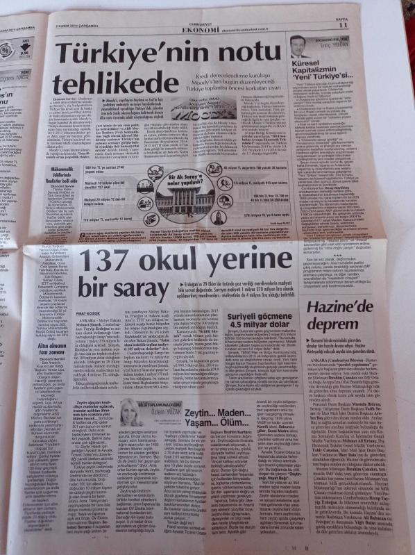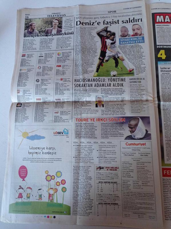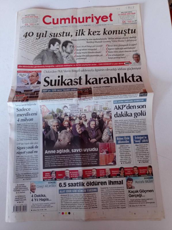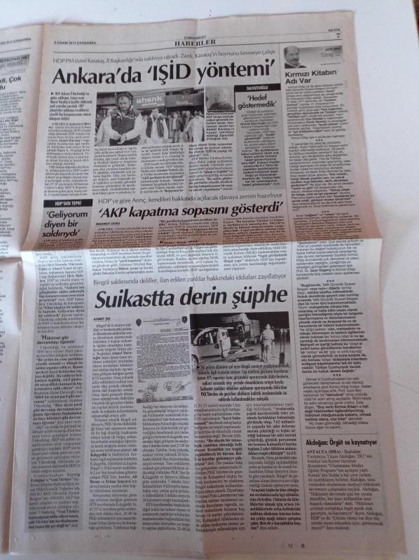 Cumhuriyet Gazetesi - 5 Kasım 2014 - Futbolcu Deniz Naki'ye Faşist Saldırı - Felipe Melo - Yeni Havalimanı - Yırtıcı Kuşların Çığlığı - Greenpeace'ten Akkuyu Çağrısı - Deniz Gezmiş'in Kardeşi Hamdi Gezmiş 40 Sene Sonra Konuştu - Gezi Direnişi adlı eser Türkçe dilindedir.