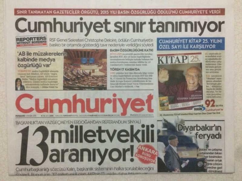 Cumhuriyet Gazetesi 5 Kasım 2015 - 13 Milletvekili Aranıyor GZ50389, en son 18 gün önce güncellenmiştir.