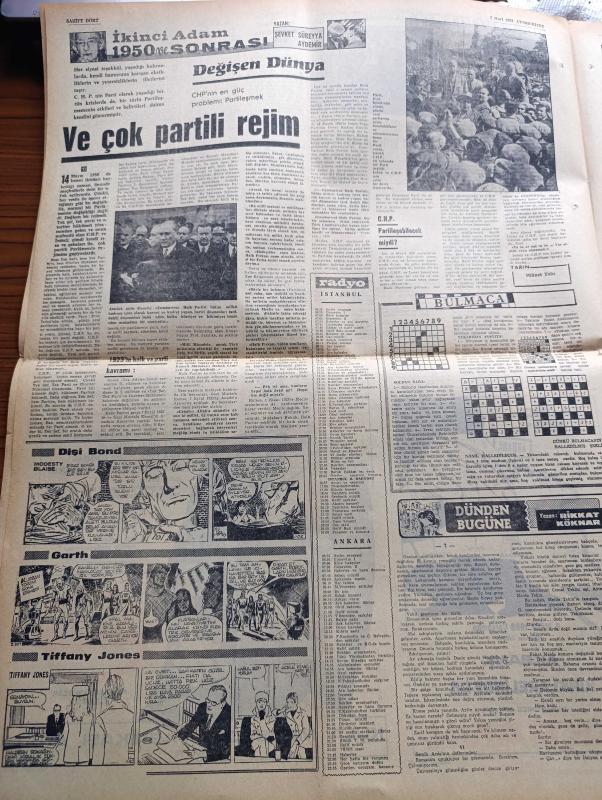 Cumhuriyet Gazetesi - 5 Mart 1968 - Başkan Nasır İsrail Savaşını Anlattı - Tarihi Eser Bulanlara Değerinin Yüzde 25 50 si Oranında İkramiye Var - İsmet İnönü Aşırı Akımın Daima Karşısındayız - Başbakan Süleyman Demirel Gericiliğin Başlıca Teşvikçisidir - Ulaştırma Bakanı Sadettin Bilgiç Devlet Demiryolları Yolları Zarardan Kurtulamaz - İlhan Selçuk Köşe Yazısı - Komünist Partiler Görüşlerini Budapeşte Açıklıyor - İkinci Adam 1950 ve Sonrası Yazan Şevket Süreyya Aydemir Yazı Dizisi - Dişi Bond Çizgi Roman - Garth Çizgi Roman - Tiffany Jones Çizgi Roman - Soul Müziği - Fenerbahçe'nin Teknik Direktörü Molnar Memnun Şampiyonluğa Daha Çok Yaklaştık - Sten Suvio Boks Milli Takımımızı Çalıştıracak - Yılmaz Şen Ben Metin Oktay'a Taparım - Türkiye Basketbol Kupası İstanbul Grubu Yarı Finali - Spor Toto Tahminleri adlı eser, Kitap > Süreli Yayınlar > Gazeteler > Türkiye > Genel > Günlük kategorisinde İkinci El olarak satıştadır.