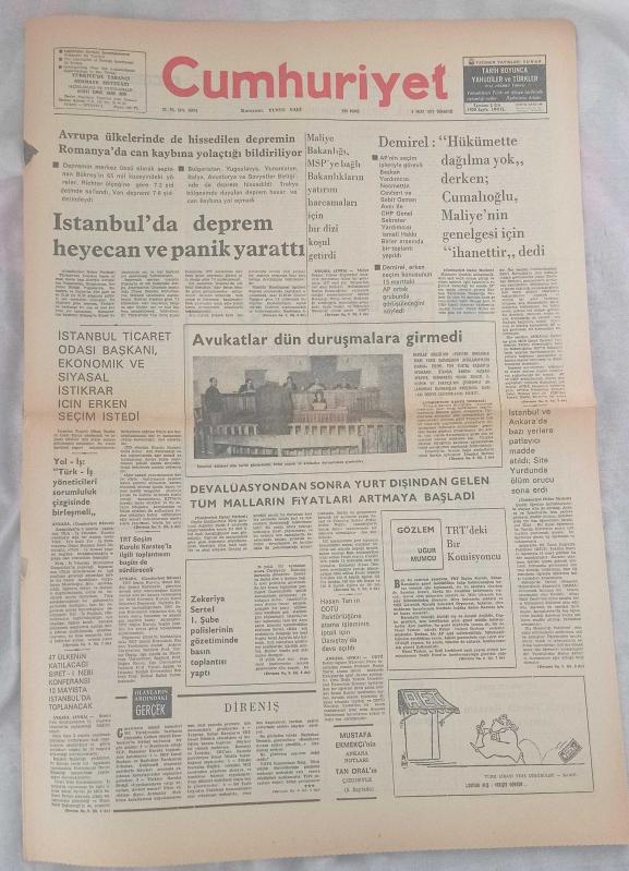 Kitap 1977 yılında yayınlanmıştır. 10 sayfadır. Cumhuriyet Gazetesi 5 Mart 1977 - İstanbul'da deprem heyecan ve panik yarattı- Yasadaki boşluklar, memurların zararına işliyor...- adlı eser Türkçe dilindedir.