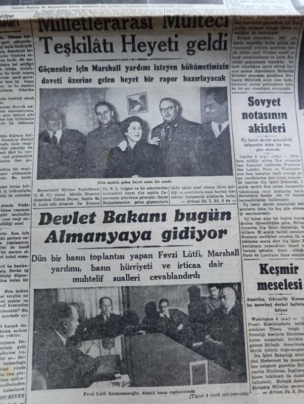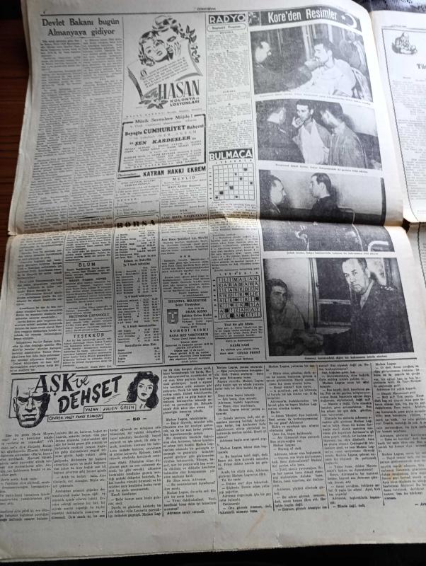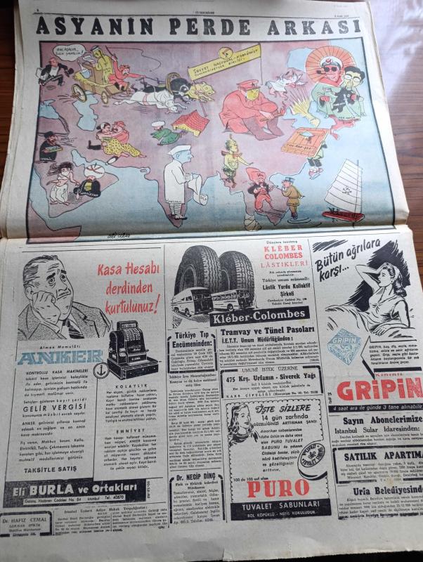 Cumhuriyet Gazetesi - 5 Ocak 1951 - Bütçe Tartışmaları Cumhuriyet Başmakale - Celal Bayar Ve Başbakan Adnan Menderes Dün İstanbul'a Geldi Fotoğraf - Milletlerarası Mülteci Teşkilatı Heyeti Geldi Fotoğraf - Devlet Bakanı Fevzi Lütfi Karaosmanoğlu Bugün Almanya'ya Gidiyor - Çinliler İle Anlaşmak İçin Yeni Teşebbüsler - Başkan Truman İyimser - Seul Şehri Alevler İçinde - Korgeneral Şahap Gürler Tokyo Hastaneleri Ziyareti Esnasında Yaralı Bir Erimizle Görüşürken Fotoğrafı - Tarsus Gemisi İle Getirilen Kürkler - Pazartesi Kore'den İki Yaralımız Geliyor - Bahar Yazdan Sonra Geldi Nakleden Vahdet Gültekin Yazı Dizisi - Boksör Joe Louis Rakibini Perişan Etti - Kore'den Resimler - Şahap Gürler Tokyo Hastahanesinde Bir Kahramanın Elini Sıkıyor - İstanbul Ankara Radyosu Programı - Kore'den Türkiye'dekilere Mektup - Türkiye'den Koredekilere Mektup - Asya'nın Perde Arkası Renkli Karikatür Çizen Ali Ulvi - Anker Kasa - Gripin - Puro Tuvalet Sabunu adlı eser, Kitap > Süreli Yayınlar > Gazeteler > Türkiye > Genel > Günlük kategorisinde İkinci El olarak satıştadır.