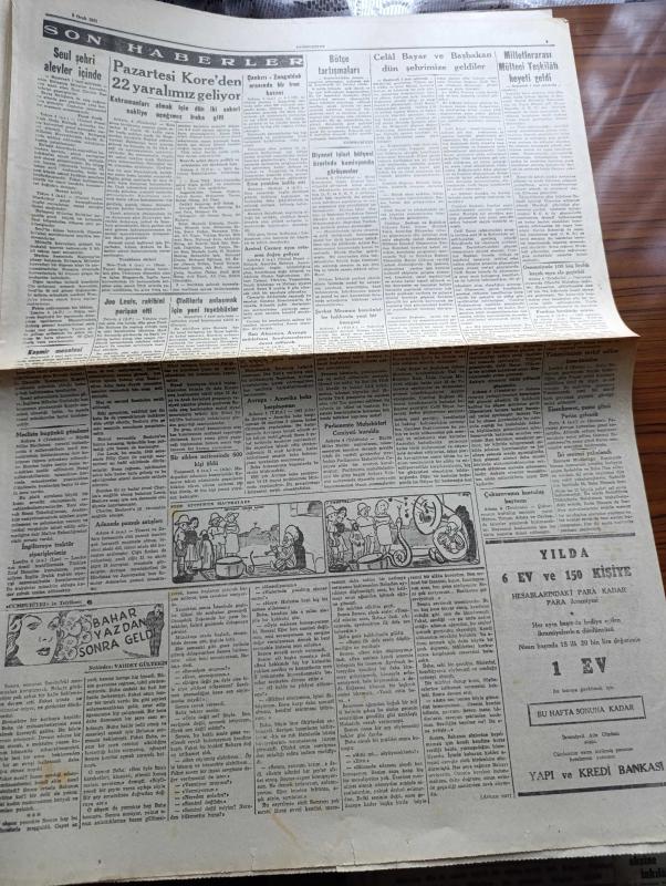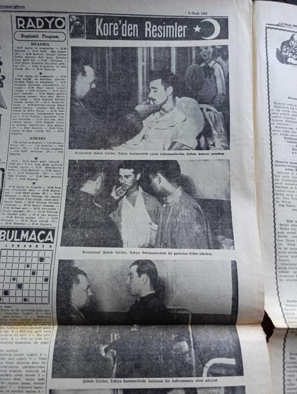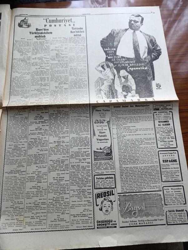 Cumhuriyet Gazetesi - 5 Ocak 1951 - Bütçe Tartışmaları Cumhuriyet Başmakale - Celal Bayar Ve Başbakan Adnan Menderes Dün İstanbul'a Geldi Fotoğraf - Milletlerarası Mülteci Teşkilatı Heyeti Geldi Fotoğraf - Devlet Bakanı Fevzi Lütfi Karaosmanoğlu Bugün Almanya'ya Gidiyor - Çinliler İle Anlaşmak İçin Yeni Teşebbüsler - Başkan Truman İyimser - Seul Şehri Alevler İçinde - Korgeneral Şahap Gürler Tokyo Hastaneleri Ziyareti Esnasında Yaralı Bir Erimizle Görüşürken Fotoğrafı - Tarsus Gemisi İle Getirilen Kürkler - Pazartesi Kore'den İki Yaralımız Geliyor - Bahar Yazdan Sonra Geldi Nakleden Vahdet Gültekin Yazı Dizisi - Boksör Joe Louis Rakibini Perişan Etti - Kore'den Resimler - Şahap Gürler Tokyo Hastahanesinde Bir Kahramanın Elini Sıkıyor - İstanbul Ankara Radyosu Programı - Kore'den Türkiye'dekilere Mektup - Türkiye'den Koredekilere Mektup - Asya'nın Perde Arkası Renkli Karikatür Çizen Ali Ulvi - Anker Kasa - Gripin - Puro Tuvalet Sabunu, Yunus Nadi tarafından kaleme alınmıştır. Cumhuriyet Gazetesi - 5 Ocak 1951 - Bütçe Tartışmaları Cumhuriyet Başmakale - Celal Bayar Ve Başbakan Adnan Menderes Dün İstanbul'a Geldi Fotoğraf - Milletlerarası Mülteci Teşkilatı Heyeti Geldi Fotoğraf - Devlet Bakanı Fevzi Lütfi Karaosmanoğlu Bugün Almanya'ya Gidiyor - Çinliler İle Anlaşmak İçin Yeni Teşebbüsler - Başkan Truman İyimser - Seul Şehri Alevler İçinde - Korgeneral Şahap Gürler Tokyo Hastaneleri Ziyareti Esnasında Yaralı Bir Erimizle Görüşürken Fotoğrafı - Tarsus Gemisi İle Getirilen Kürkler - Pazartesi Kore'den İki Yaralımız Geliyor - Bahar Yazdan Sonra Geldi Nakleden Vahdet Gültekin Yazı Dizisi - Boksör Joe Louis Rakibini Perişan Etti - Kore'den Resimler - Şahap Gürler Tokyo Hastahanesinde Bir Kahramanın Elini Sıkıyor - İstanbul Ankara Radyosu Programı - Kore'den Türkiye'dekilere Mektup - Türkiye'den Koredekilere Mektup - Asya'nın Perde Arkası Renkli Karikatür Çizen Ali Ulvi - Anker Kasa - Gripin - Puro Tuvalet Sabunu adlı eser Türkçe dilindedir.