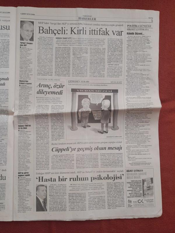 Kitap 2010 yılında yayınlanmıştır. 20 sayfadır. Cumhuriyet Gazetesi 5 Şubat 2010 Peygamber Tartışması Sertleşiyor,Uyuyan Devi Uyandırdılar,NATO Toplandı Elektrik Kesildi,EMASYA Artık Tarih Oldu,Türkiye'ye Afganistan Övgüsü,Fenerbahçe Hız Kesmedi,Uğur Zemin Kurbanı,,Galatasaray'da Kâbus Hortladı,Taktik Hasta Yatağında adlı eser Türkçe dilindedir.