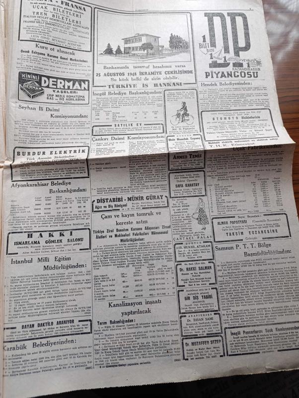 Cumhuriyet Gazetesi - 5 Temmuz 1948 - Miskalle Verilen Haklar Köşe Yazısı - Türk Amerikan İktisadi Anlaşması Dün İmzalandı - Kremlinde de İhtilaflar Nihayet Başgösterdi - Hikmet Bayur Millet Partisi Lideri Seçildi - Seçim Kanunu Tasarısı - İstanbul Üniversitesinin 500. Yıldönümü - Olimpiyatlara Gidecek Kafile Tespit Edildi - Türk Güreşine İlaveler Yazan İsmail Habib Sevük - Bakırköy Panaroma Bahçesinde İsmail Dümbüllü Tiyatrosu Ve Müzeyyen Senar Işıl - Ramazanda Pide İmaline Müsaade Edildi - Nasıl Yazmalı Yazan Burhan Felek Köşe Yazısı - Amerika'da Komünist Aleyhtarı Bir İşçi Birliği Kuruluyor - Çapamarka - Derman Ağrı Kesici - Otokar - Bugünkü Radyo Programı - Armstrong Lastikleri - Philips Floresan adlı eser, Kitap > Süreli Yayınlar > Gazeteler > Türkiye > Genel > Günlük kategorisinde İkinci El olarak satıştadır.