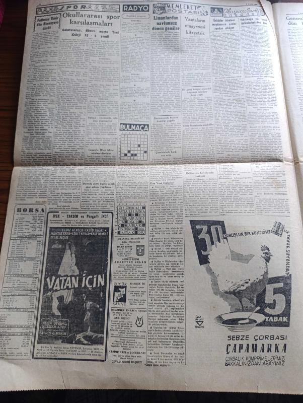 Cumhuriyet Gazetesi - 6 Aralık 1951 - Kahire Ve İskenderiyede Kanlı Nümayişler Yapıldı - Tahtakalede Dün Polislerle Eroinciler Arasında Büyük Arbede Oldu Fotoğraf - Celal Bayar Samsun'da - General Tahsin Yazıcı Dün Kore'den Döndü fotoğraf - Hacı Altıner Amerika'dan Avdet Etti - Afrika'dan Geliyorum yazan Haldun Sel yazı dizisi - Yataklı Vagonlar 75 Yaşında - 2000 Yılın Sevgilisi Yazan Refik Halid Karay Yazı Dizisi - Tarih Kurumunun Tüzüğü Değiştirildi - Demir Perde Gerisinde Bütün Camiler Kapatıldı - belediyede satışlar yazan Burhan Felek - Kanserin Radyo Aktiv Usullerle Tedavisi - Futbolcu Bekir Refeti Dün Almanya'ya Döndü - Okullararası Spor Karşılaşmaları - Gazanfer Bilge Tekrar Mindere Dönüyor - Vatan İçin Filmi oynayanlar Yıldız Kenter Cahid Irgat İpek Taksim ve Pangaltı İnci sinemasında - Varta Akümülatörü - Hamiyet Yüceses Perihan Sözeri Zehra Bilir plakları Herses Ticaret Evinde - İstanbul belediyesi şehir tiyatroları dram kısmında soygun komedi kısmında Ahretten Selam adlı eser, Kitap > Süreli Yayınlar > Gazeteler > Türkiye > Genel > Günlük kategorisinde İkinci El olarak satıştadır.